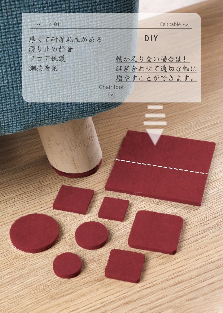 【DIY】この椅子の脚用のフェルトは自由にカットでき、さまざまな形状の家具を保護し、家具を移動する際の床への傷や騒音を軽減します。