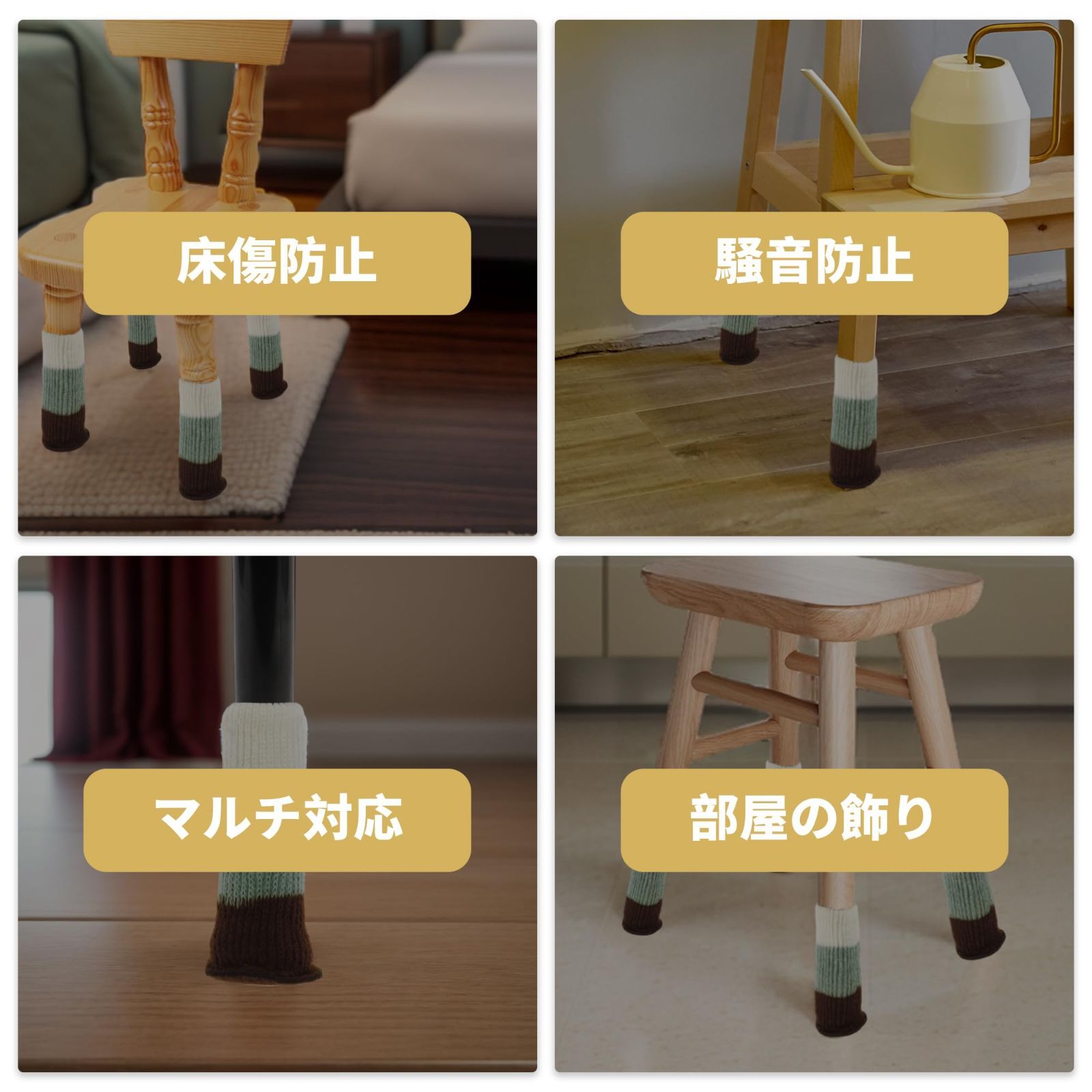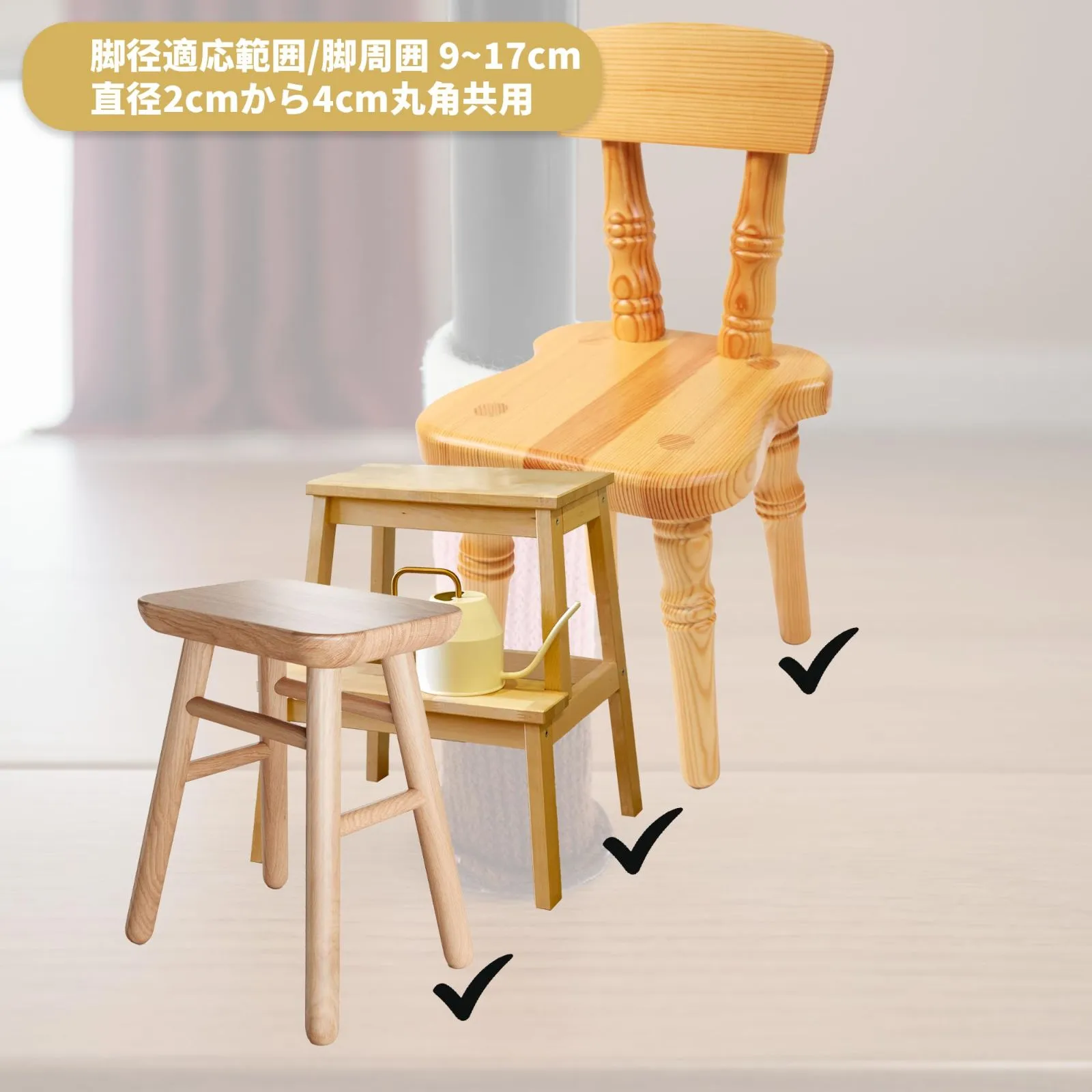【セット内容】4脚分(16枚入り)で、細い脚から太い脚まで対応。椅子脚カバーの適応サイズは円周6-18cmで、丸みを帯びた脚や角持ちの椅子、太くても細くても柔軟にマッチ。椅子脚だけでなく、折りたたみ椅子、テーブル、食卓椅子、ソファ、化粧台など、サイズに合わせた家具にも使える多用途アイテム。