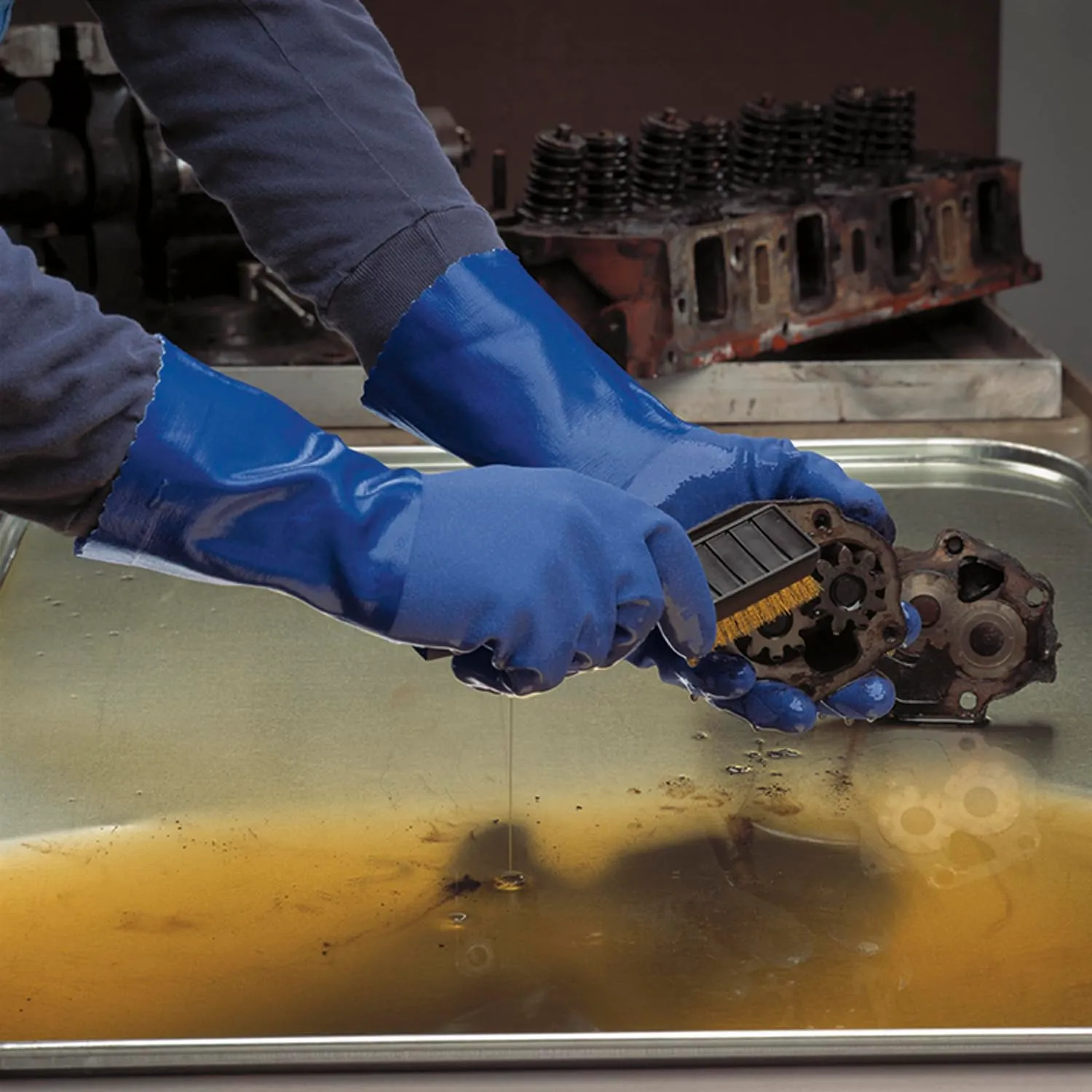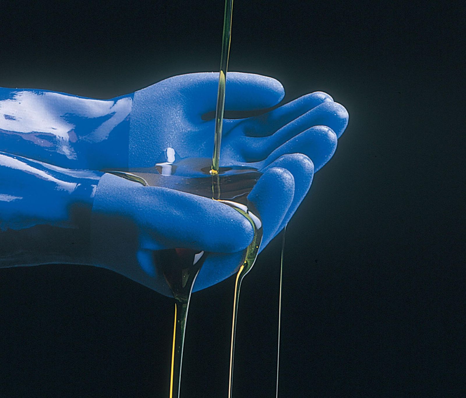 【油に強く、丈夫】特殊配合の塩化ビニル樹脂を全面にコーティングしたオールコート手袋(裏布付き)で耐油性に優れた「耐油ビニローブ」より