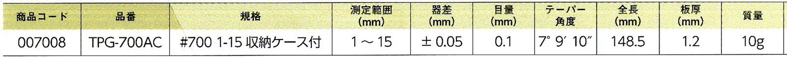 新潟精機 SK 日本製 テーパーゲージ #700 1-15mm 1.2mm厚 TPG-700AC 収納ケース付