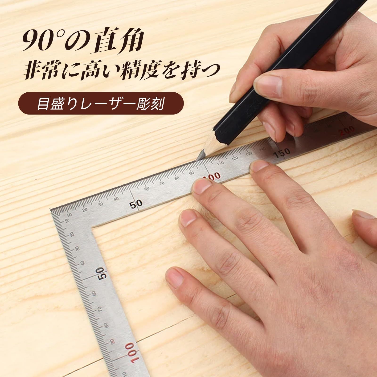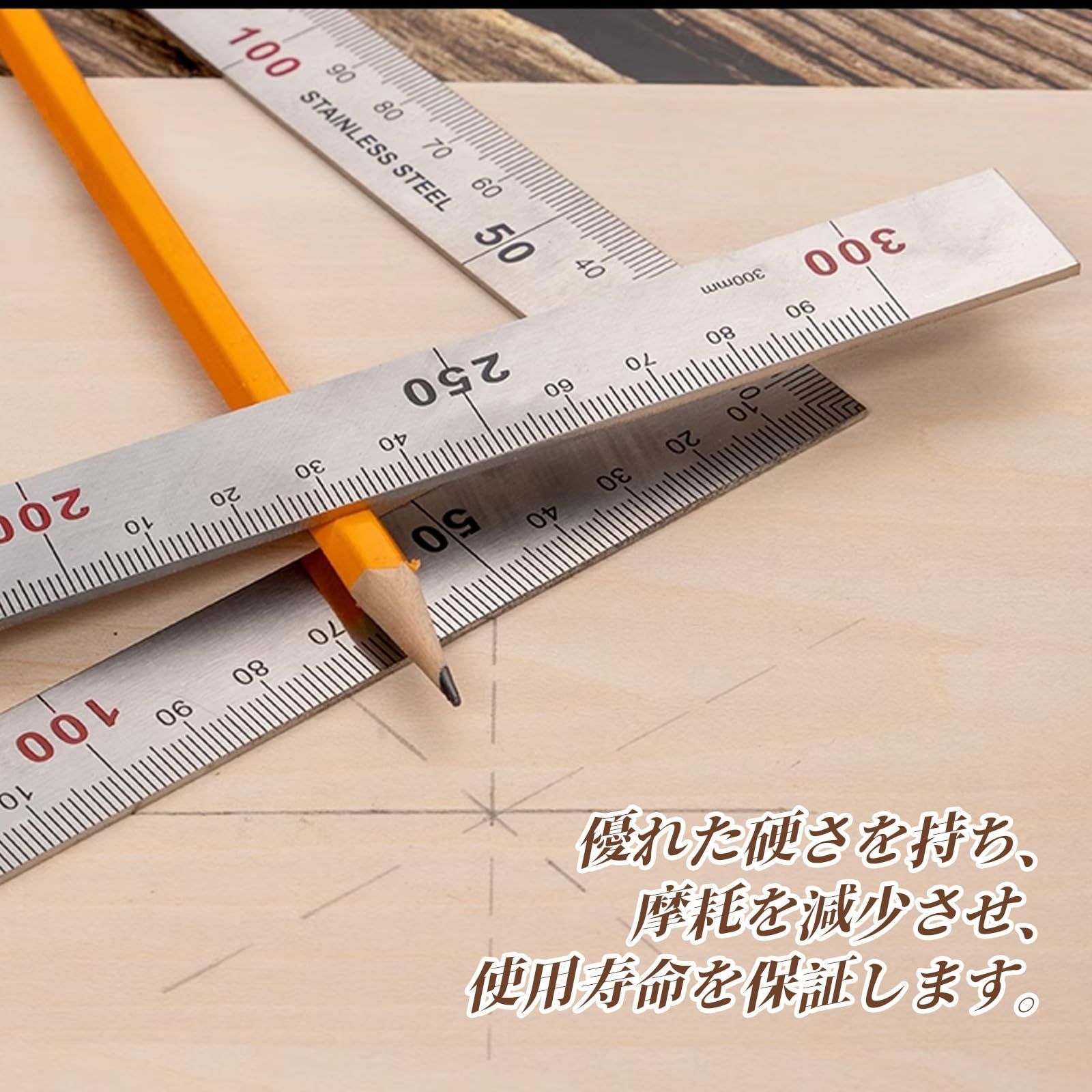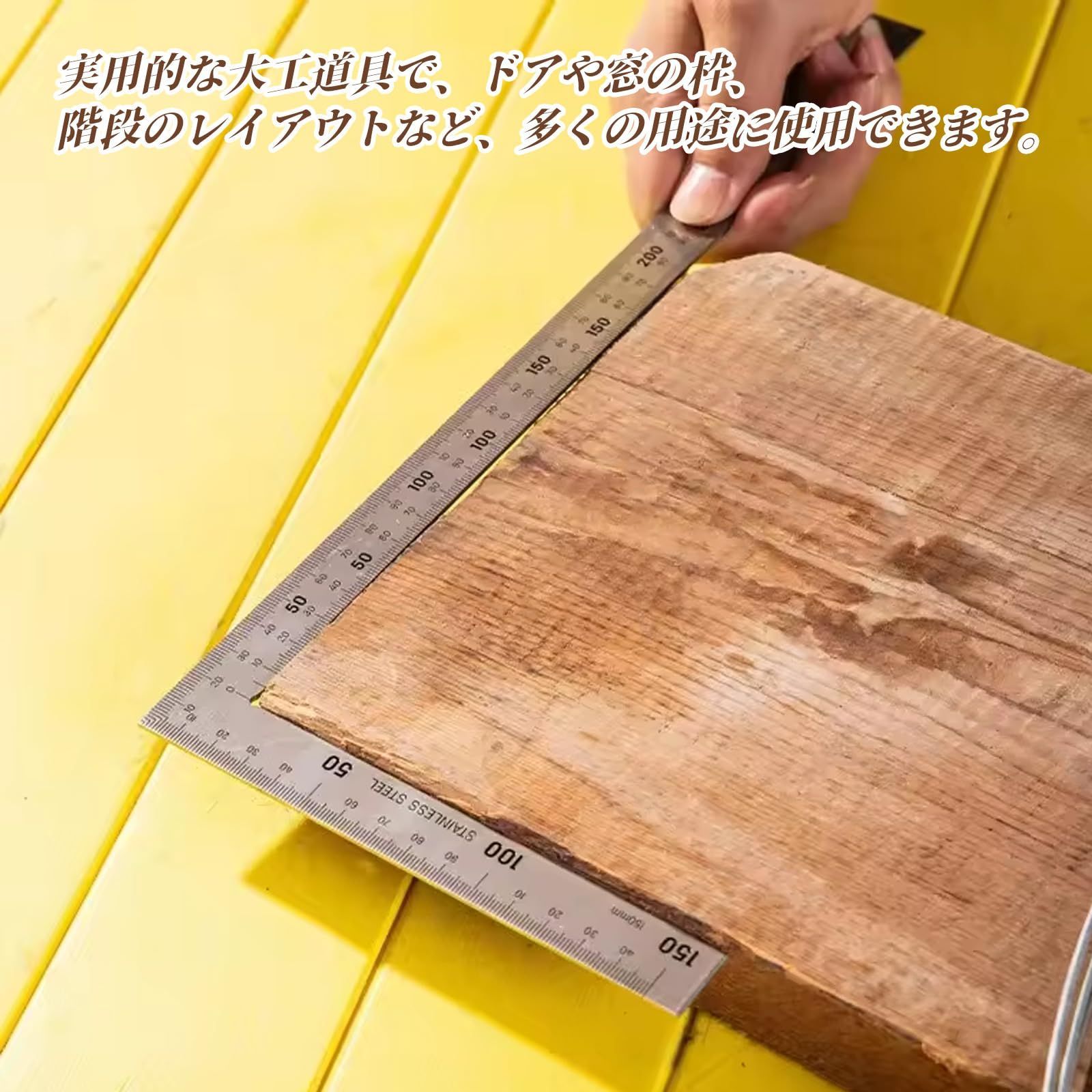 直角定規:この高品質の直角定規は、精密な測定と切断に欠かせないアイテムです。耐久性に優れたステンレス鋼で作られており、高い硬度 を備えています。長期間の使用にも耐えられる設計です。