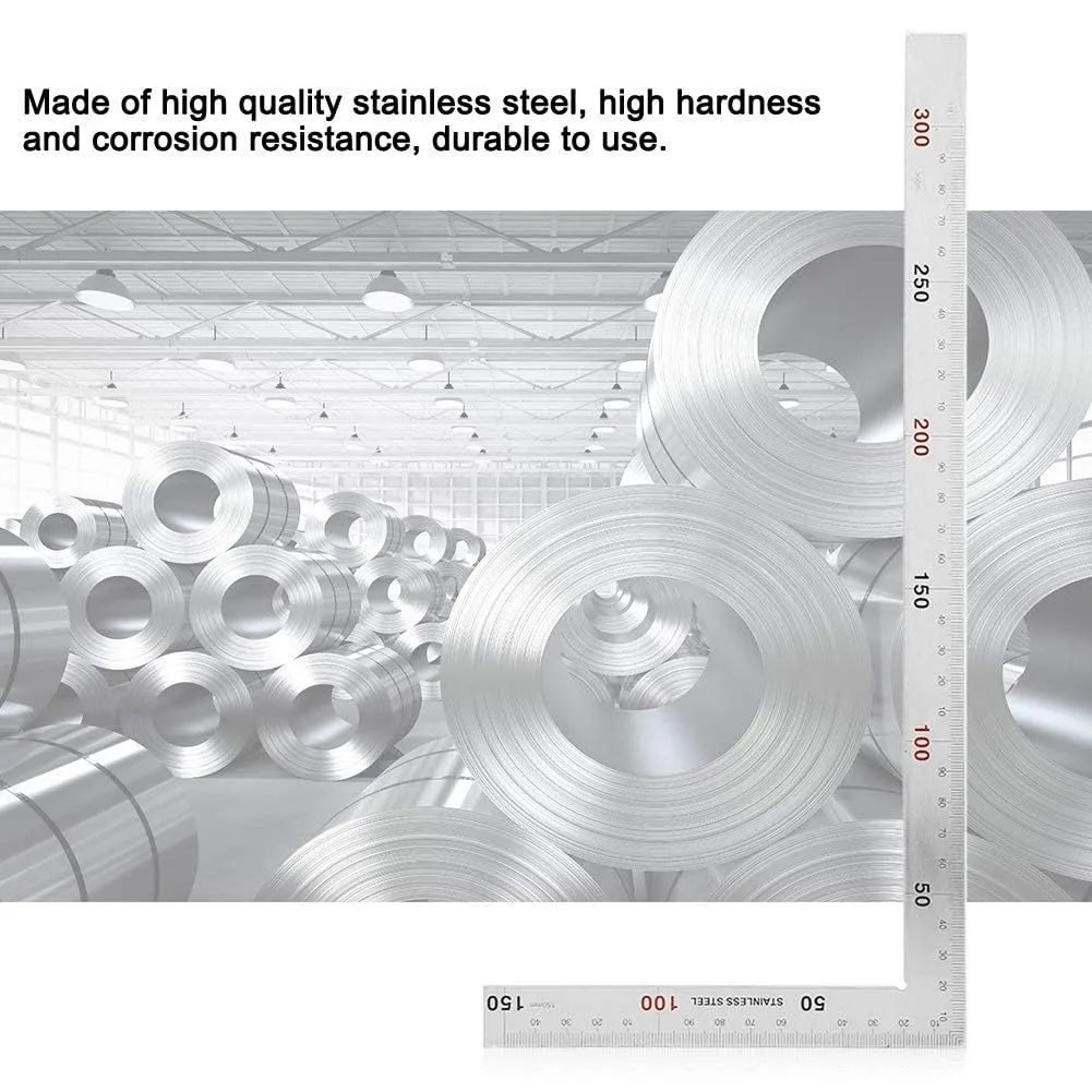 Kodrily 直角定規 L形 両面用 曲尺 建築・鉄工用 90度 L形 測定工具 ゲージ ステンレス鋼 分度器 アングルルーラー 耐久性 木工ツール シルバー 測定レイアウトツール アングルルーラー(300mm*150mm)