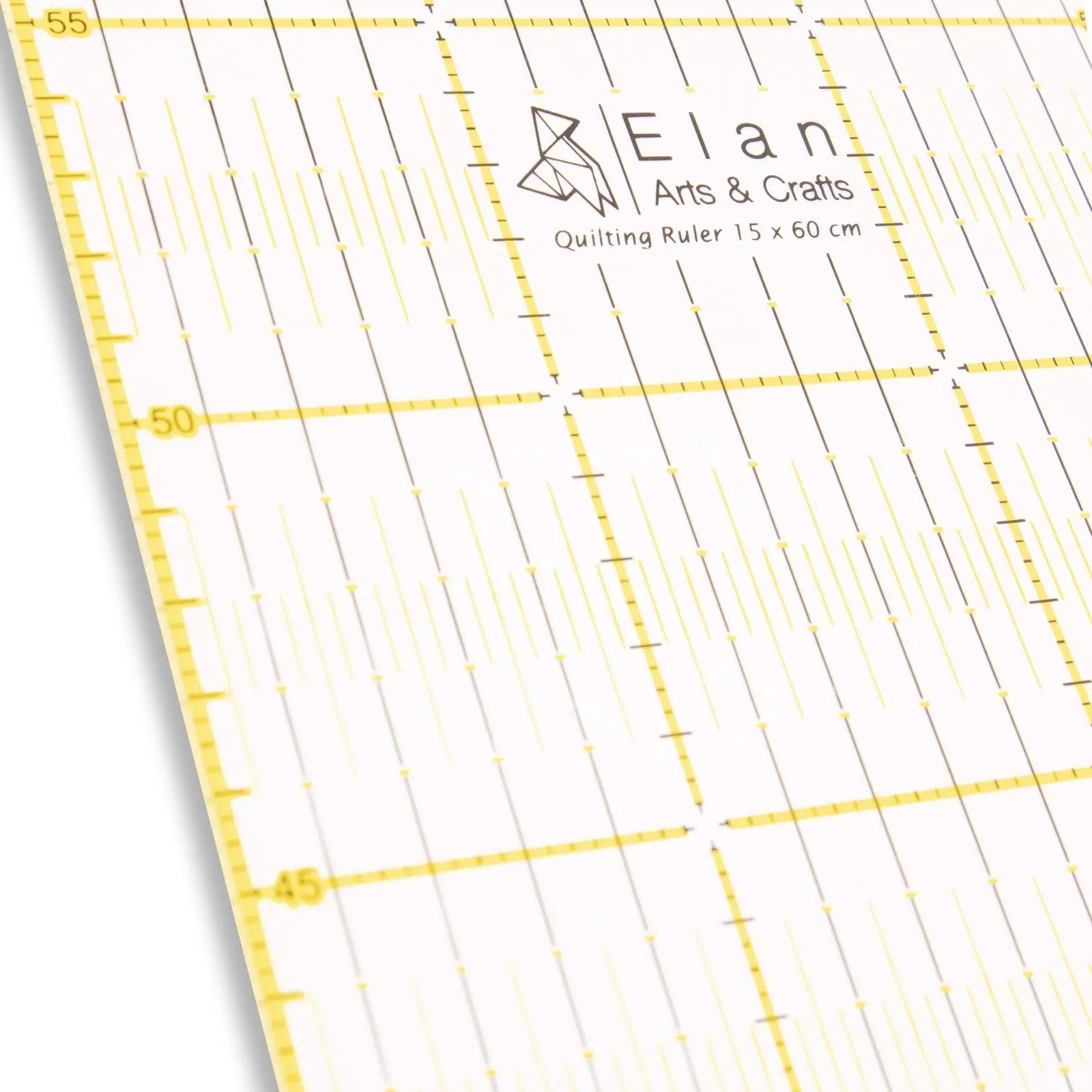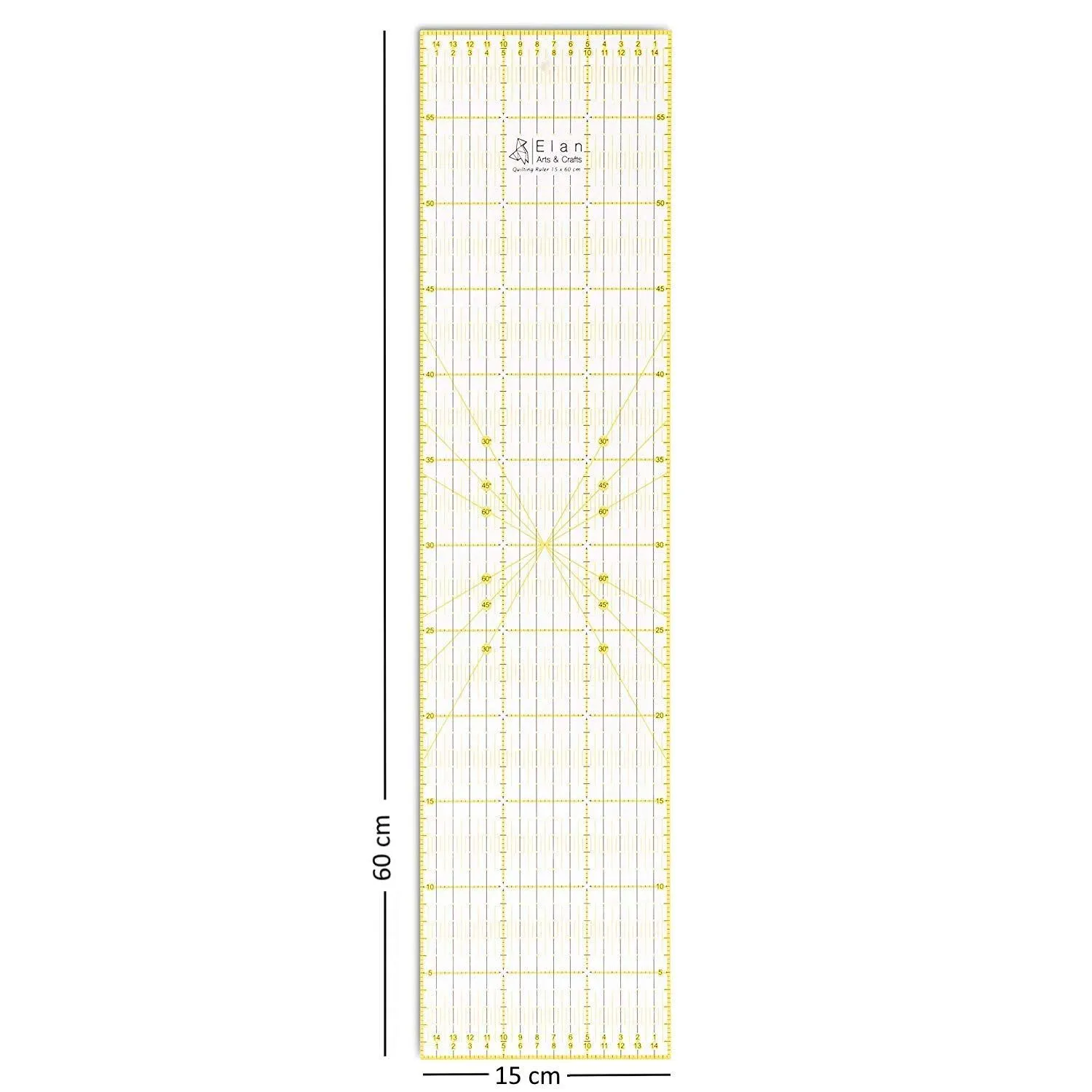 Elan 多機能定規 ものさし ミシンキルト 手芸用品 60*15cmカッターマットと併用おすすめ | パッチワーク 縫製 デッサン 切断用