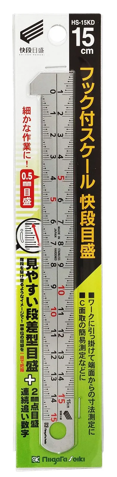 新潟精機(Niigataseiki) SK 日本製 フック付スケール 快段目盛 150mm 目盛上段1mm 下段0.5mピッチ HS-15KD