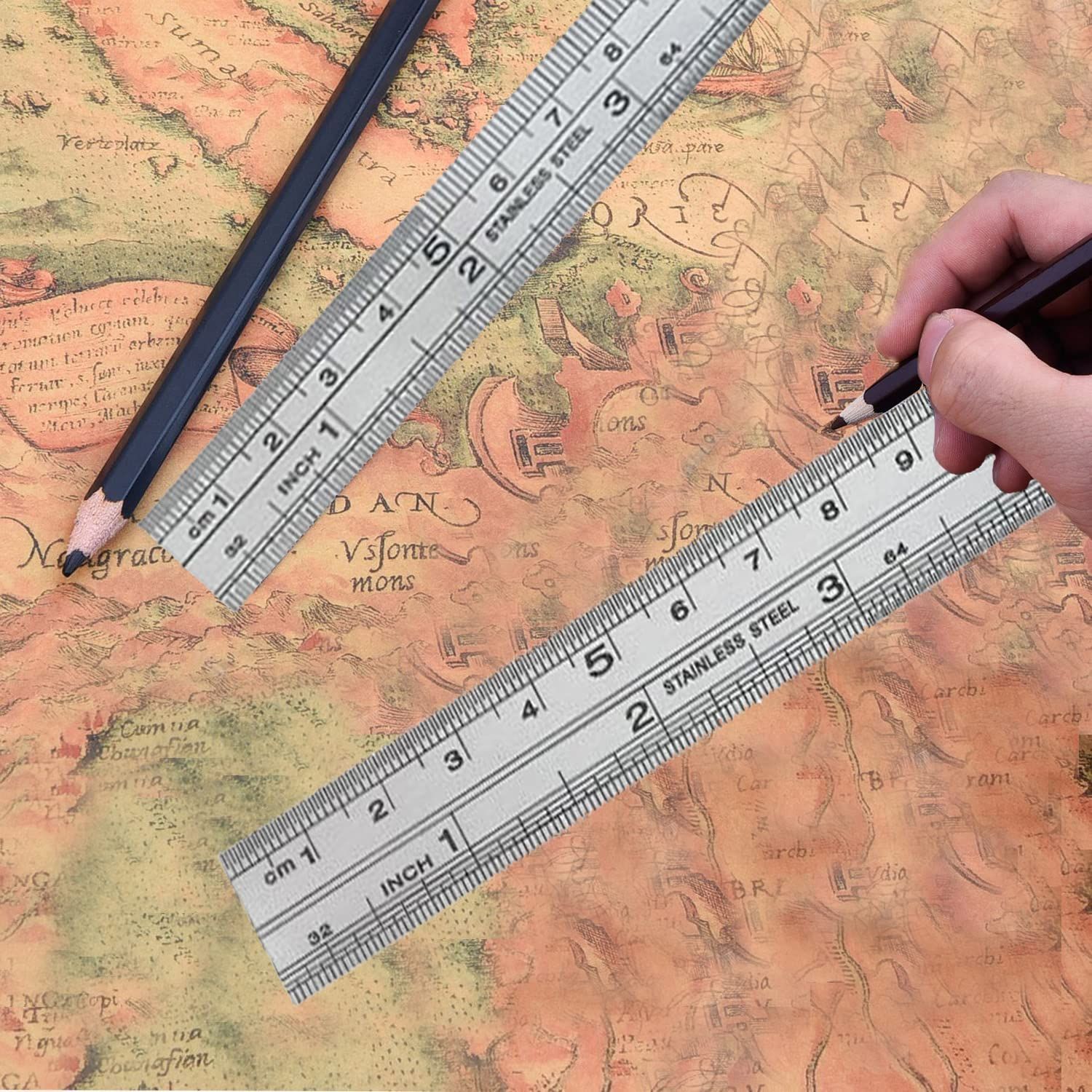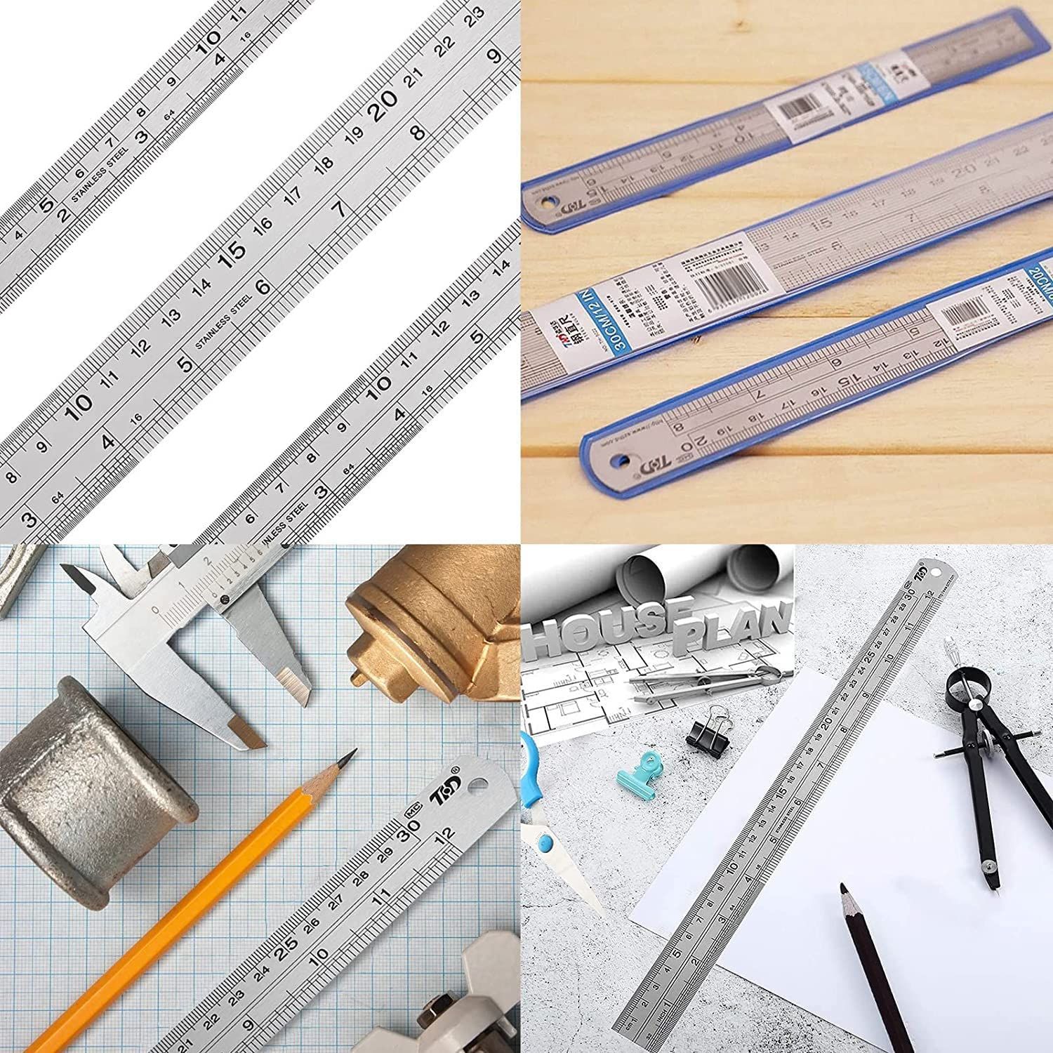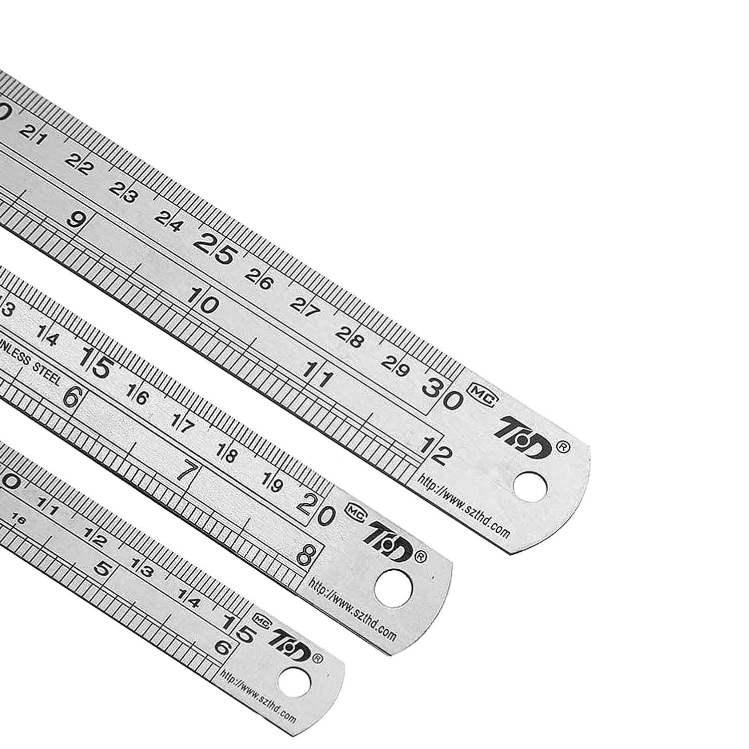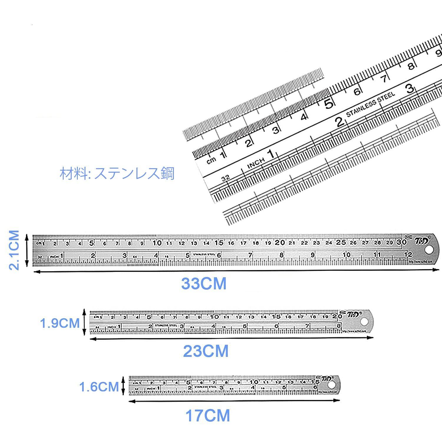 MOLATE 3種セットステンレス直尺 定規 測定工具 両側 測量用品 定規 測定スケール センチメートル・インチ表示 30CM/12inch+20CM/8inch+15CM/6inch