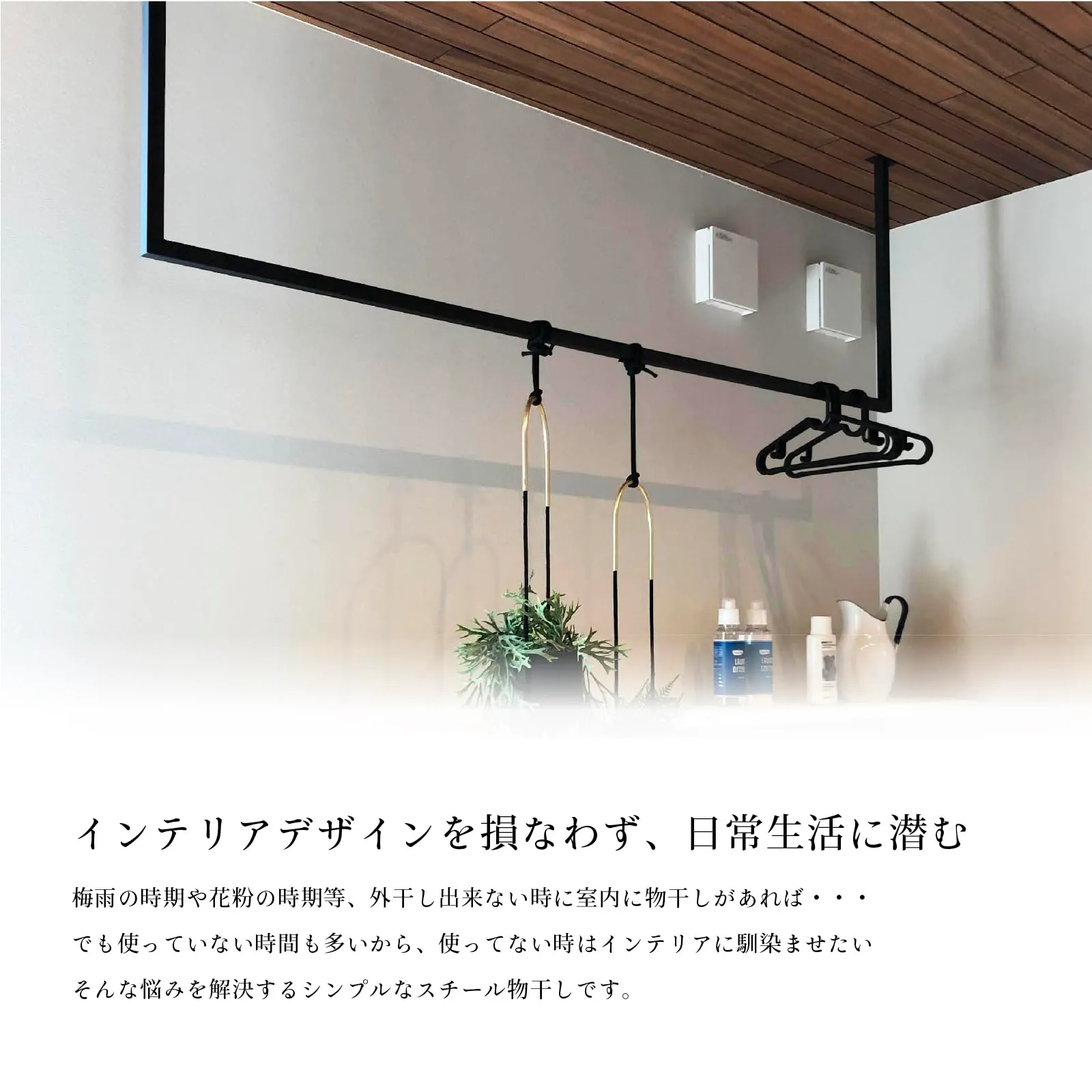梅雨や花粉の時期に室内干しできるように近年設置のニーズが高まっている物干し金物。