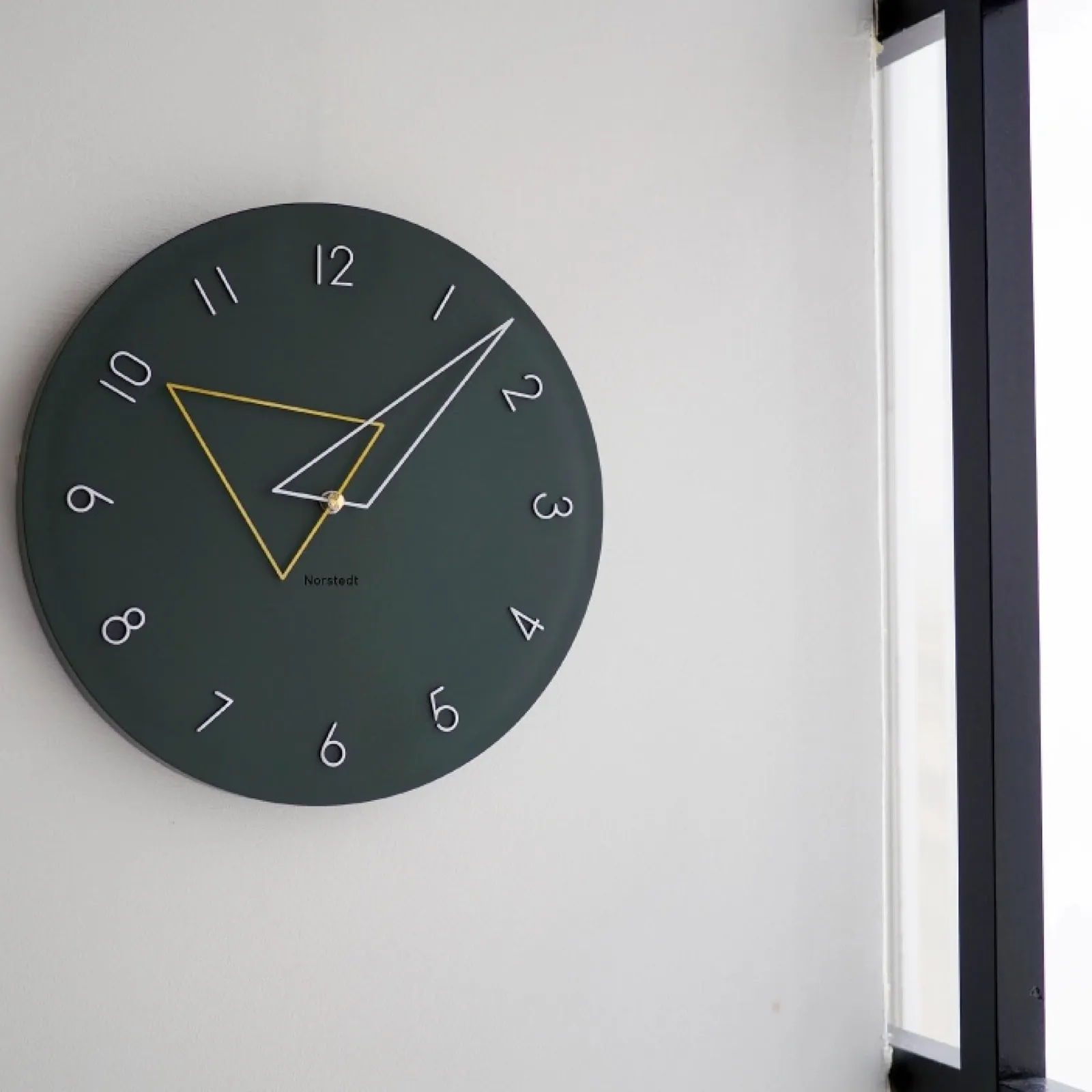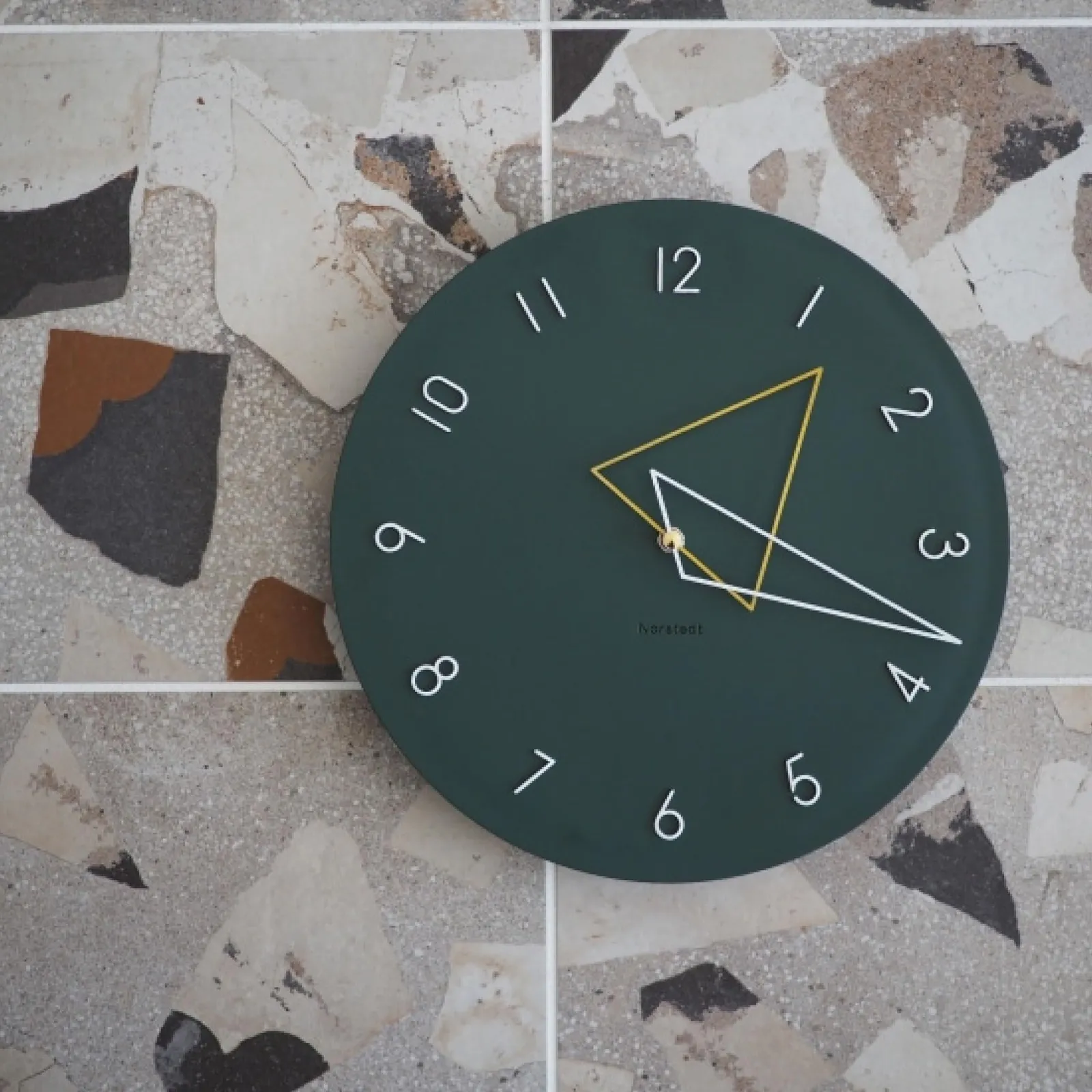【商品の概要】 ジオメトリックな針が目を惹く、遊び心に溢れたウォールクロック。 大小の三角形で表した長針と短針の重なり具合が時間経過によって変わり、眺めるたびに新鮮さを感じさせます。