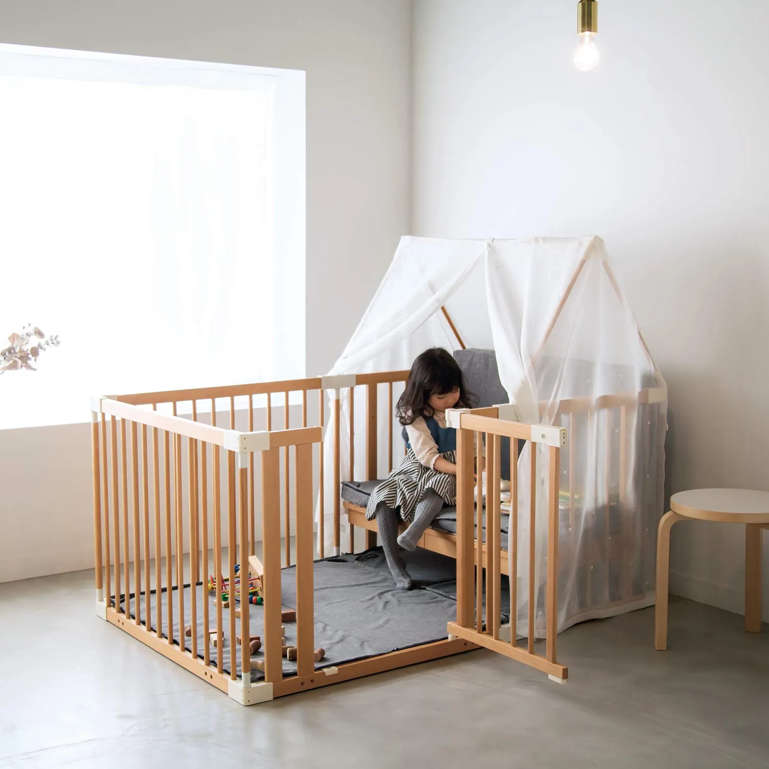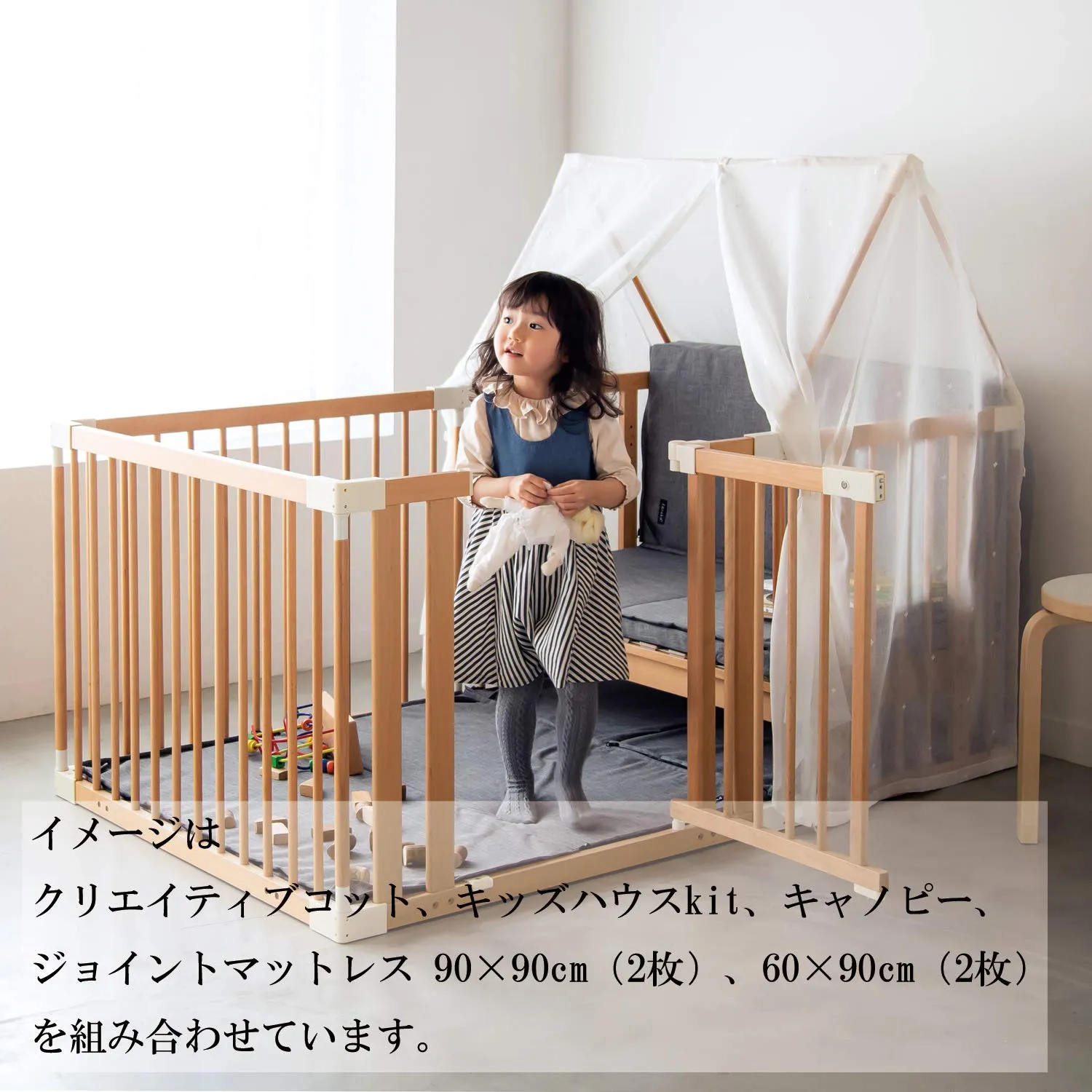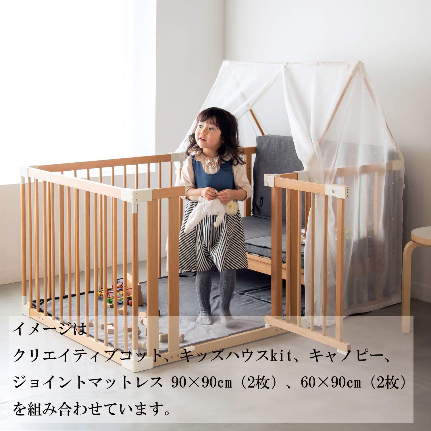・クリエイティブコットにキッズハウス キットを連結すると、子どもの為の小さなお城をつくることができます。