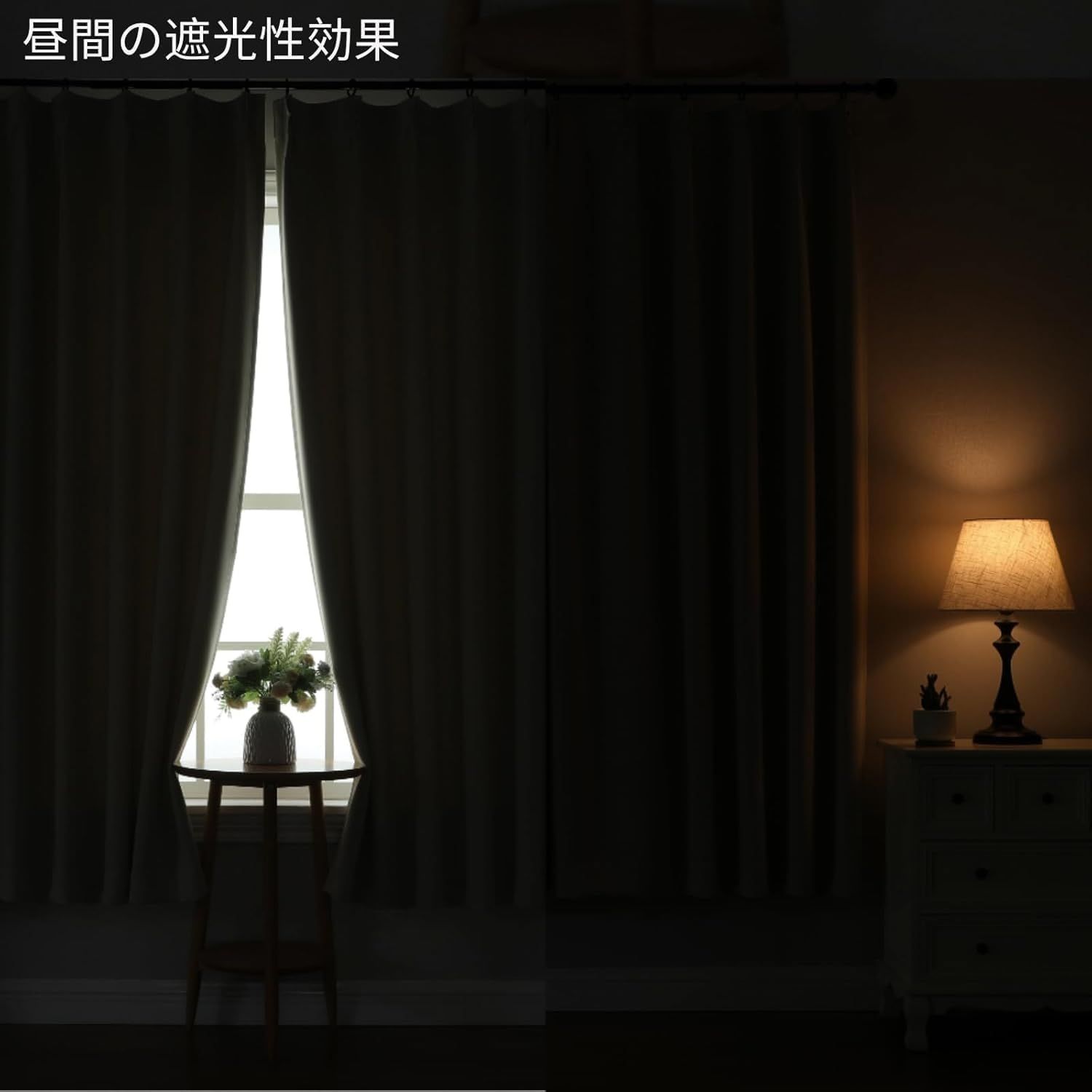【三層構造】 三重織りのテクノロジーで込んでいるので、遮光性が高く、室外からの日差しや紫外線などがしっかり遮られています。表面のコーティング遮光ポリエステルは15-19%太陽光線を遮り、真ん中の高精度黒いポリエステルは60-70%太陽光線を遮り、裏地の遮光ポリエステルは15-19%太陽光線を遮られます。