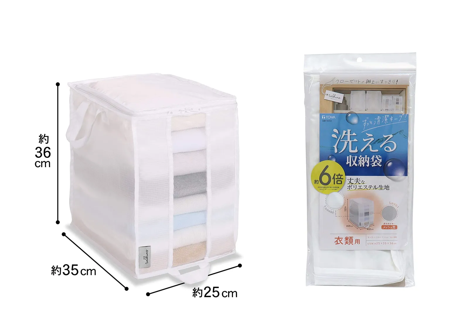 新品 東和産業 衣類収納袋 washuno丈夫な洗える衣類収納 1個入 ホワイト 約25×35×36cm