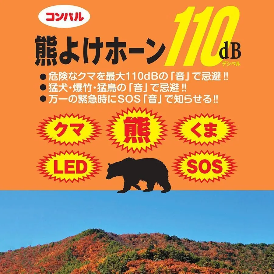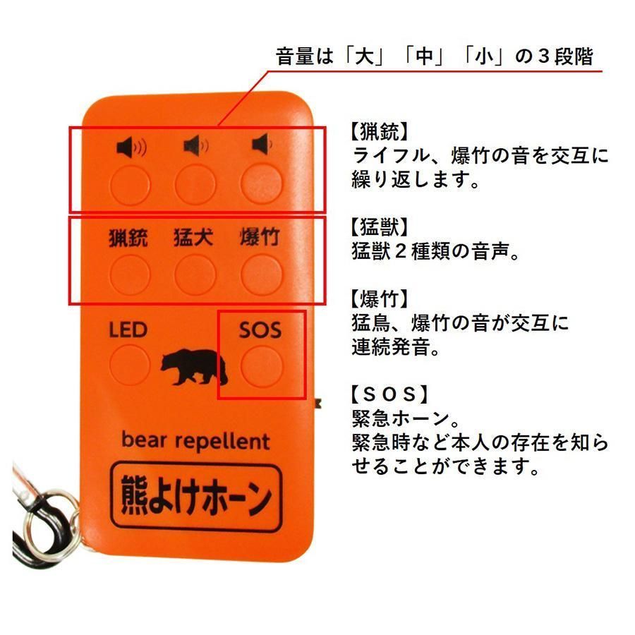 熊よけ ホーン 獣除けブザー 大音量 LEDライト付き 熊 回避 SOS伝達 防犯ブザー 山登り 登山 林業 キャンプ 防犯 防災 保証書付き 熊よけホーン