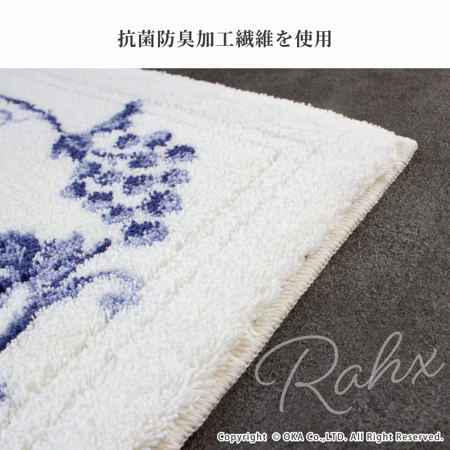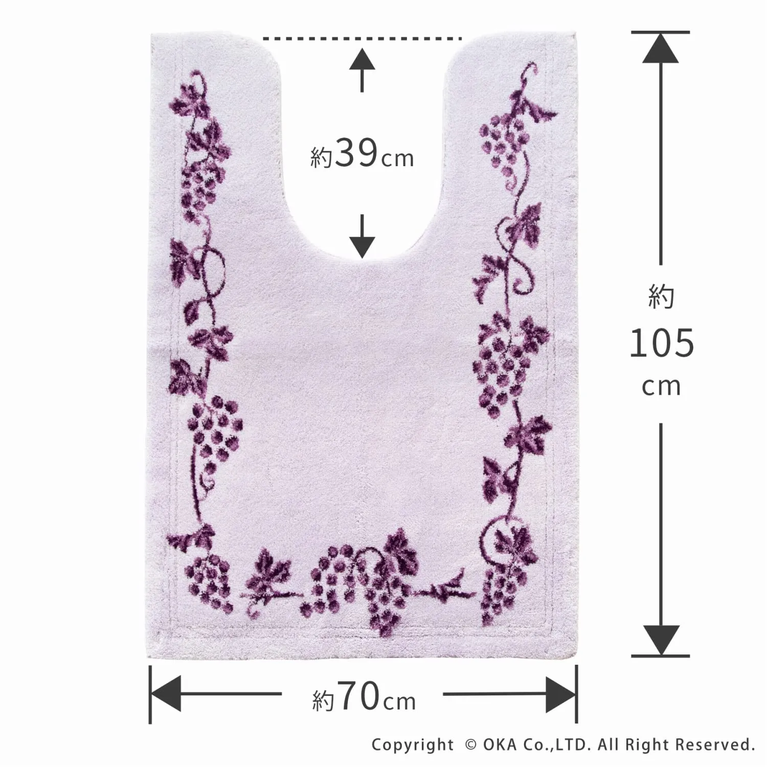 繊細な柄が表現できるウィルトン織りマットならではのエレガントな「乾度良好??ラクス トイレシリーズ」。毛立ちがいい、踏み心地がいい、日本製のこだわりの一枚です。お洗濯でき、抗菌防臭加工付きなのでいつでも清潔に保つことができます。トイレマットの裏面にはすべり止め加工が施されているのでズレにくい。糸の目をぎゅっと詰めて織り上げ、触り心地、重さなどに高級感があり、葡萄のデザインがトイレの空間をエレガントに彩ってくれます。