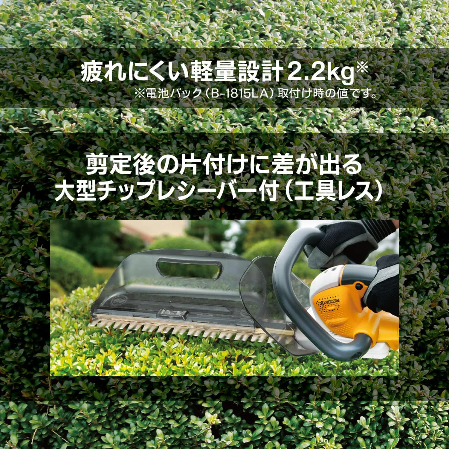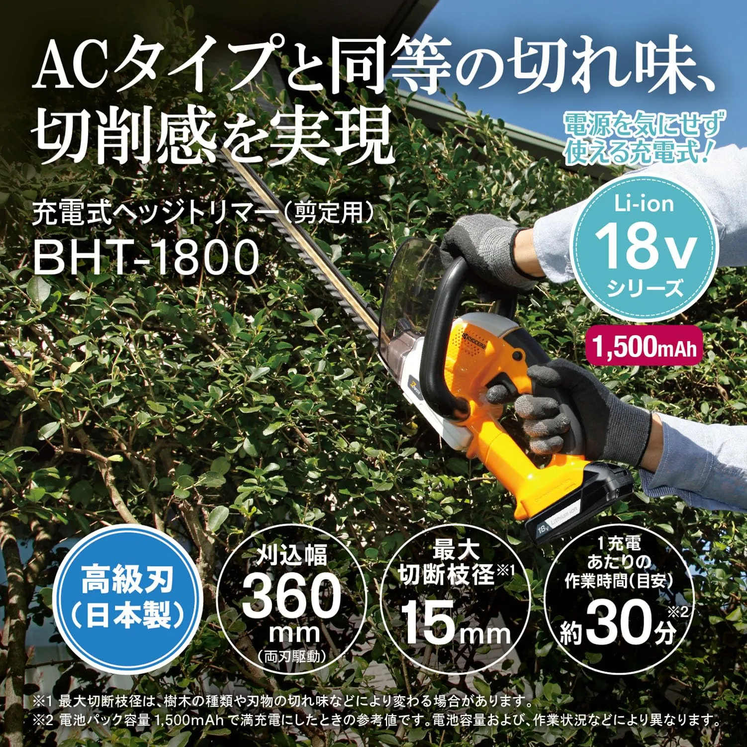 新品 京セラ(Kyocera) 旧リョービ 充電式ヘッジトリマ BHT-1800 666051A 【超低振動で快適に剪定】全刃3面研磨で切れ味長持ち 高級刃 刈込幅360mm 両刃駆動 最大切断枝径15mm 連続使用時間30分 充電時間69分 リチウムイオン1