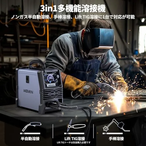 【迅速に発送】溶接機 100v ノンガス半自動 140A 使用率60% 1台3役 家庭用 半自動溶接機 ノンガスMIG アーク Lift TIG 溶接 DIYの溶接初心者向け インバーター搭載 安定アーク 電流 電圧調整可能 小型軽量 MIG溶接機 LED液晶