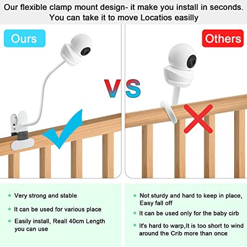 安定性と耐久性:当社のグースネックのアームは、より良い素材とデザインを採用しています。アルミニウムとマグネシウム合金製で、安定性と耐久性の両方が向上しています。何千回も曲げた後でもNooieベビーモニターをしっかりと保持できます。滑り止めクランプはフォーム素材で覆われており、家具の損傷や傷を防ぎます。