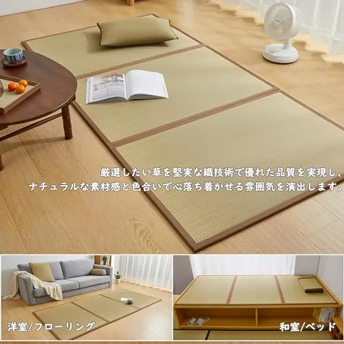 【貴重な無染土い草】い草には独特の香り、消臭力、空気浄化、湿度調節、保温断熱効果があります;上質ない草だけを採用しそのうちの最も良い部分を使用しています;一本一本が太く、表皮が厚く繊維がキメ細かいので弾力性があり、耐久性にも優れています;泥染めをせず、自然なままの無染土い草で織り上げた畳表で、艶があり明るく美しい、よりナチュラルで健康的、よりい草の力を活かせる上に、シミになりにくく、カビも生えずらいです。