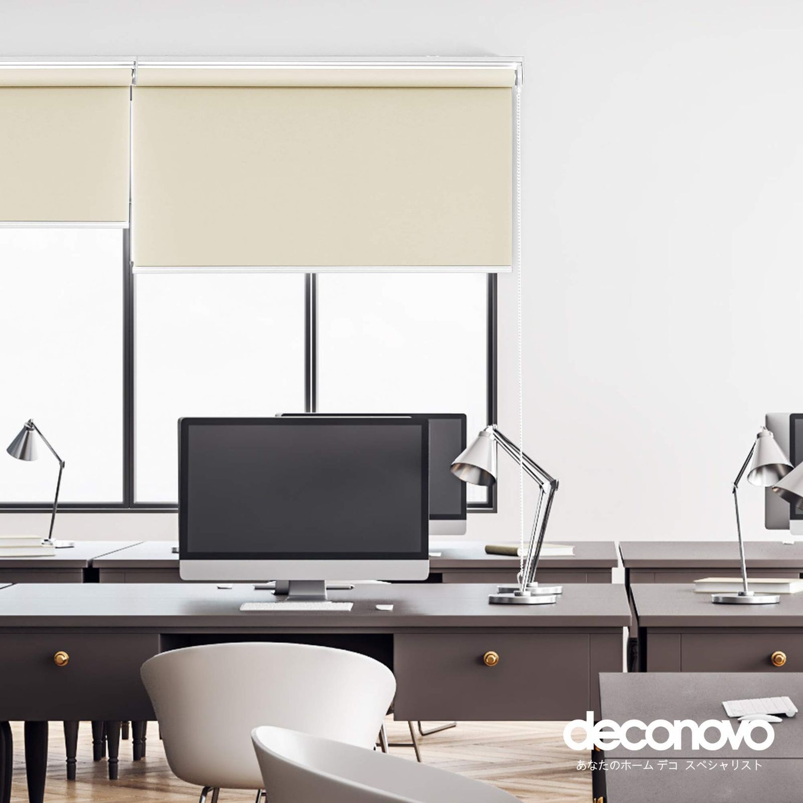 Deconovo ロールスクリーン 幅130cm 丈220cm ベージュ チェーン式 ロールカーテン 1級遮光 断熱 遮熱 防音 防寒 UVカット 表裏同色
