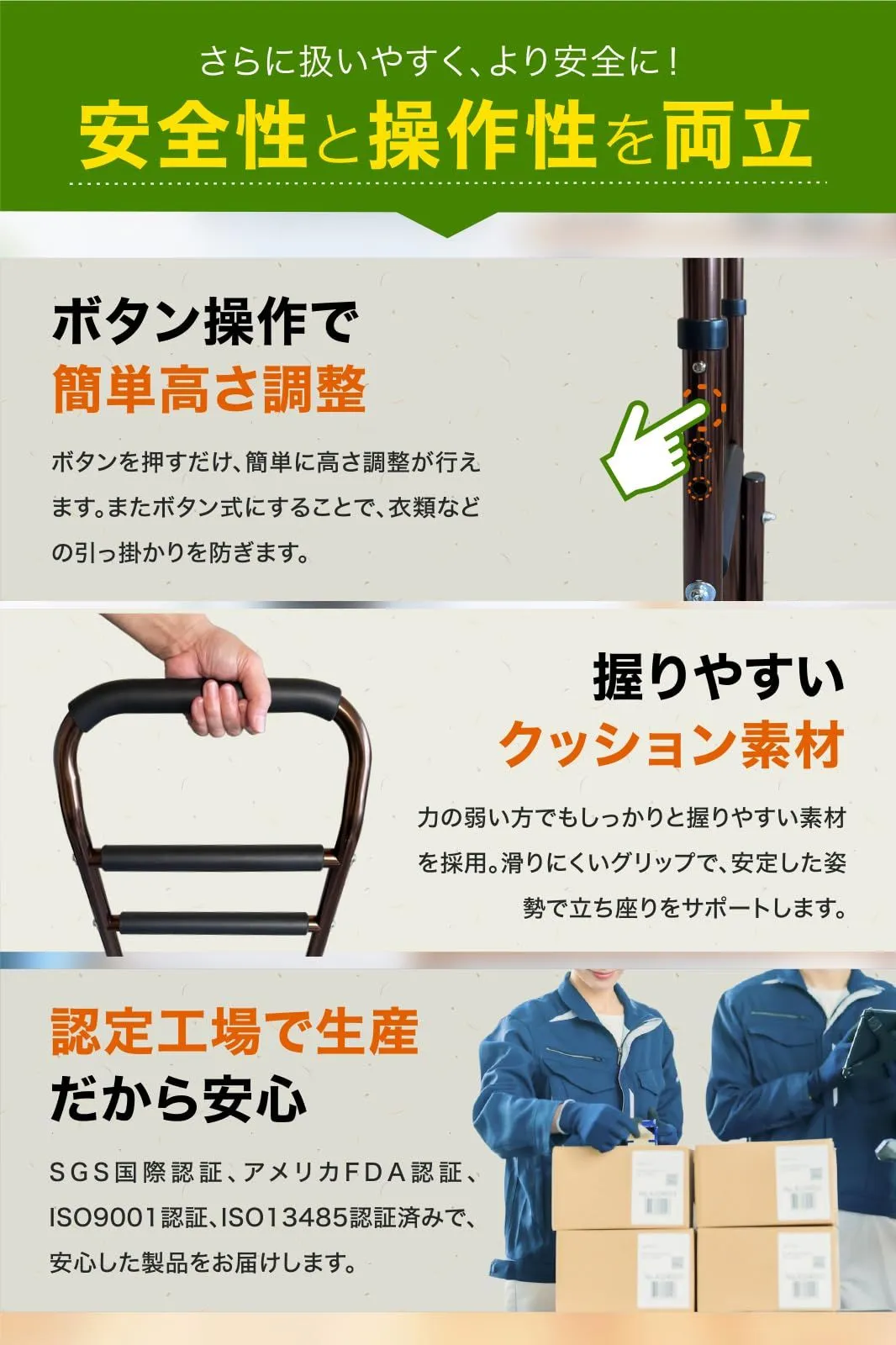 【立ち上がりを助ける!4本のクッション付き手すり】掴める手すりが4本なので立ち上がりを補助します。クッション付きで手が痛くなりにくく、立ち上がり時のサポートに最適!