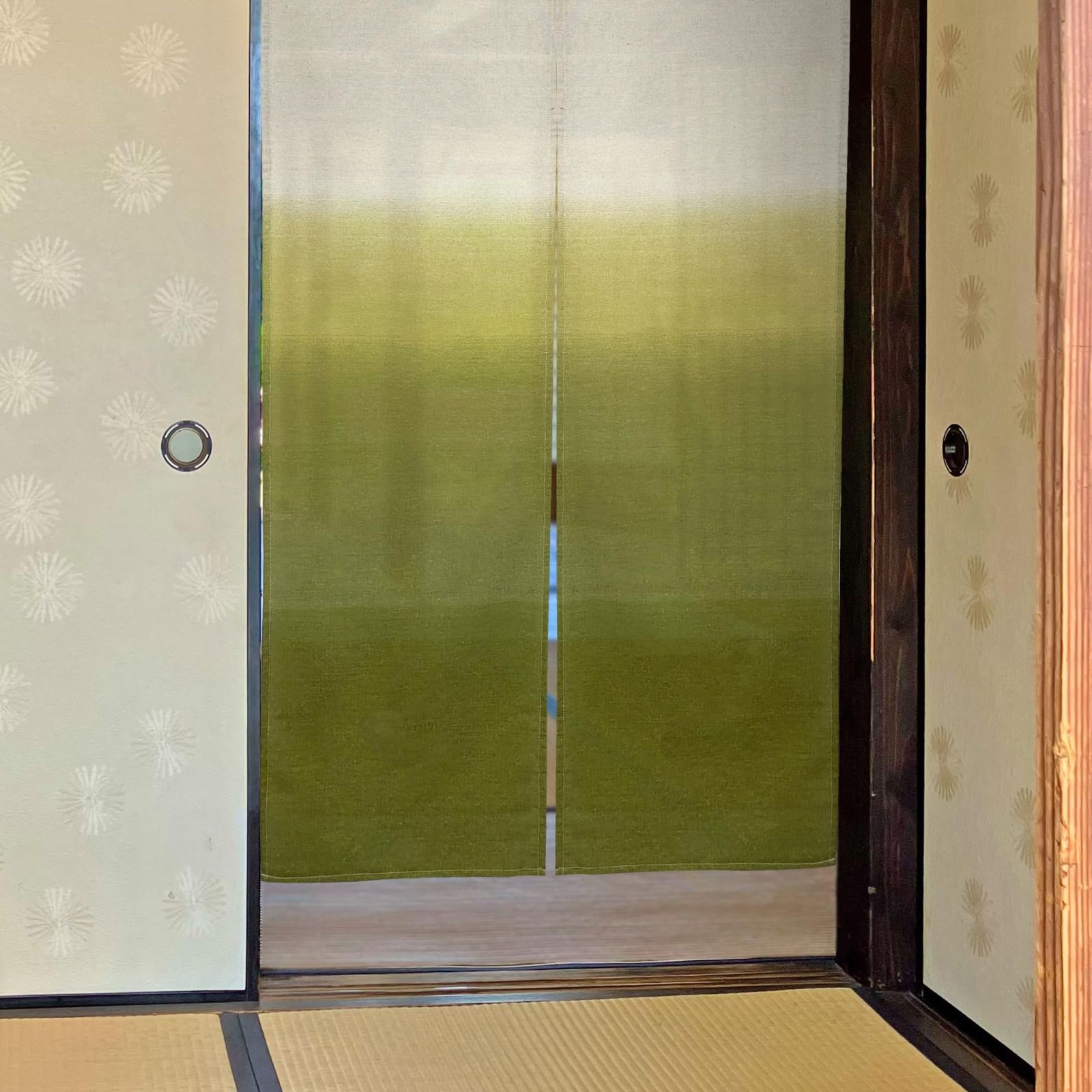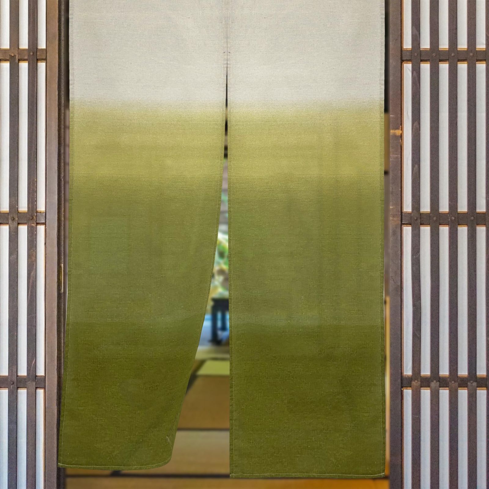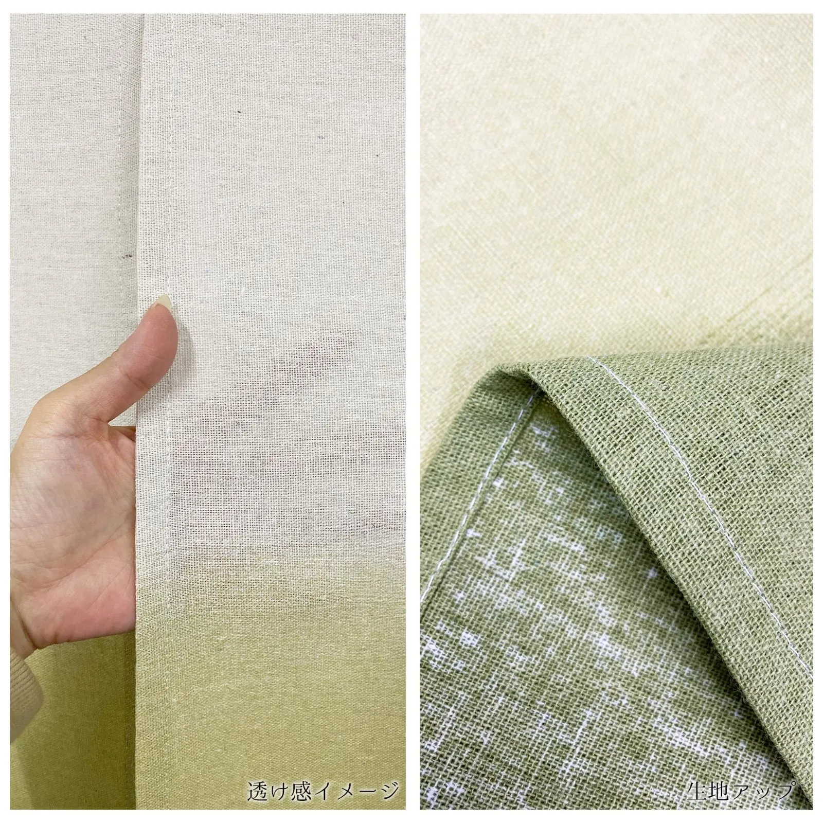 のれん 暖簾 おしゃれ カーテン 間仕切り 仕切りカーテン 目隠し 和風 和柄 和モダン 和風モダン 和風暖簾 日本 無地 シンプル グラデーション ぼかし染め風 段ぼかし 麻風 巾85cm 丈150cm (鶯色)