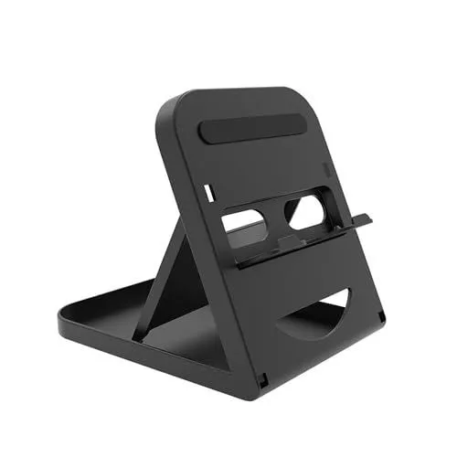 【1 / 2個セット】 周辺機器 スマホ Switch用の折り畳み式スタンドです。 角度調整可能なのでお好みの角度にすることができます。 Switchを置く場所とスタンドの底面にゴムがついていて、しっかりと固定します。 スタンドに置いたまま充電可能です。 使用しないときは折りたたむことでコンパクトになり、収納スペースを取らず持ち運びも便利になります。 カラー ブラック