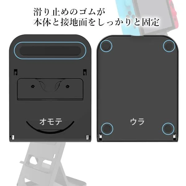 【商品説明】 ・Switch用の折り畳み式スタンドです。 ・角度調整可能なのでお好みの角度にすることができます。 ・Switchを置く場所とスタンドの底面にゴムがついていて、しっかりと固定します。 ・スタンドに置いたまま充電可能です。 ・使用しないときは折りたたむことでコンパクトになり、収納スペースを取らず持ち運びも便利になります。