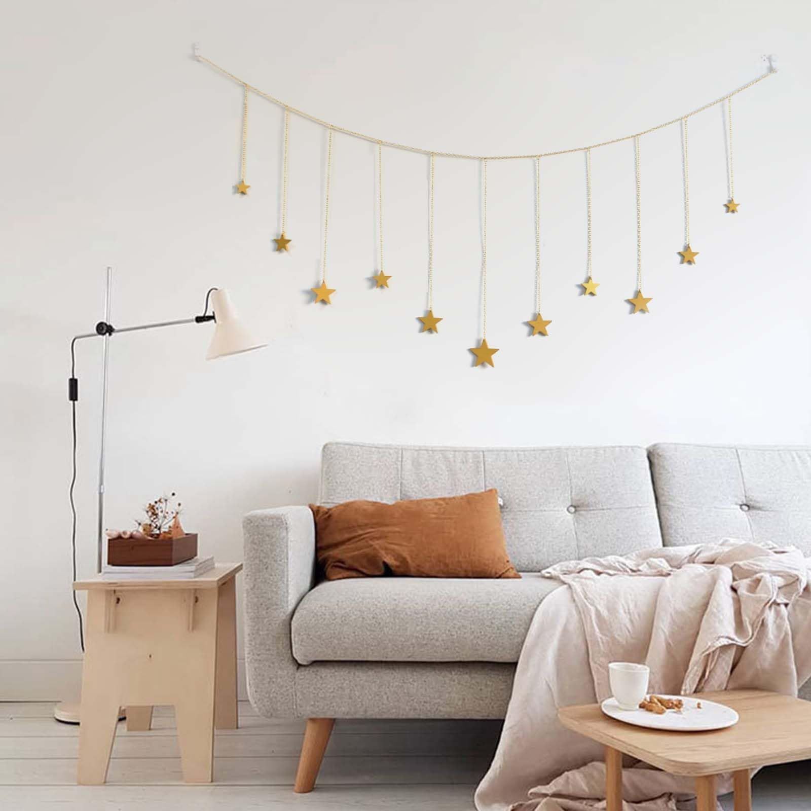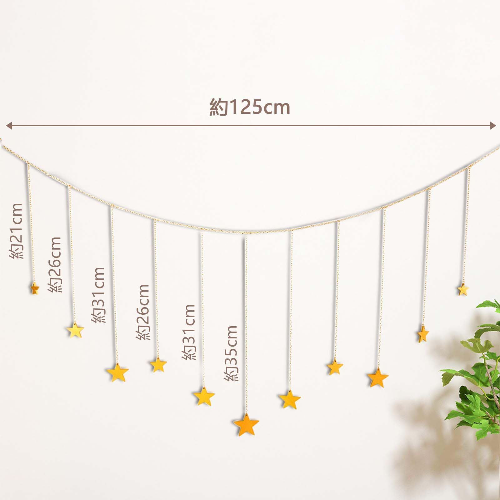 【包装】星の装飾的な壁掛けを受け取ります、サイズ仕様は約120 * 21cmです。この美しい星の壁掛けはエレガントに見え、あなたの家、寝室、リビングルームなどを飾ることができます。