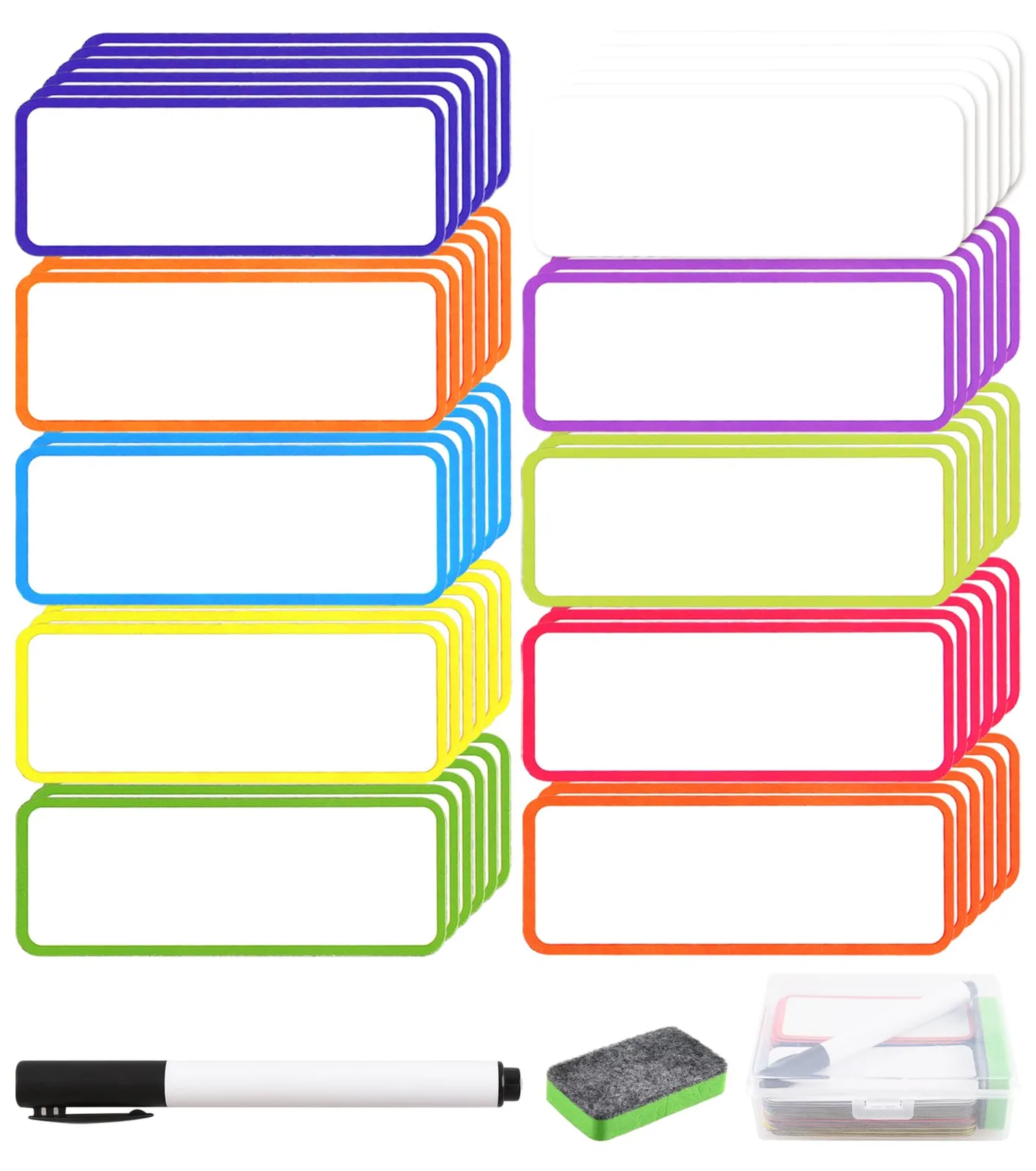 マグネットラベル 磁気ネームプレート ホワイトボードネームプレート マグネットネームプレートラベル 10色 名札ラベル マグネット 60枚入 冷蔵庫ラベル 2.9*7.9cm マグネットシートラベル 防水 繰り返し利用 磁気ラベル 事務所 倉庫 ホワイトボード