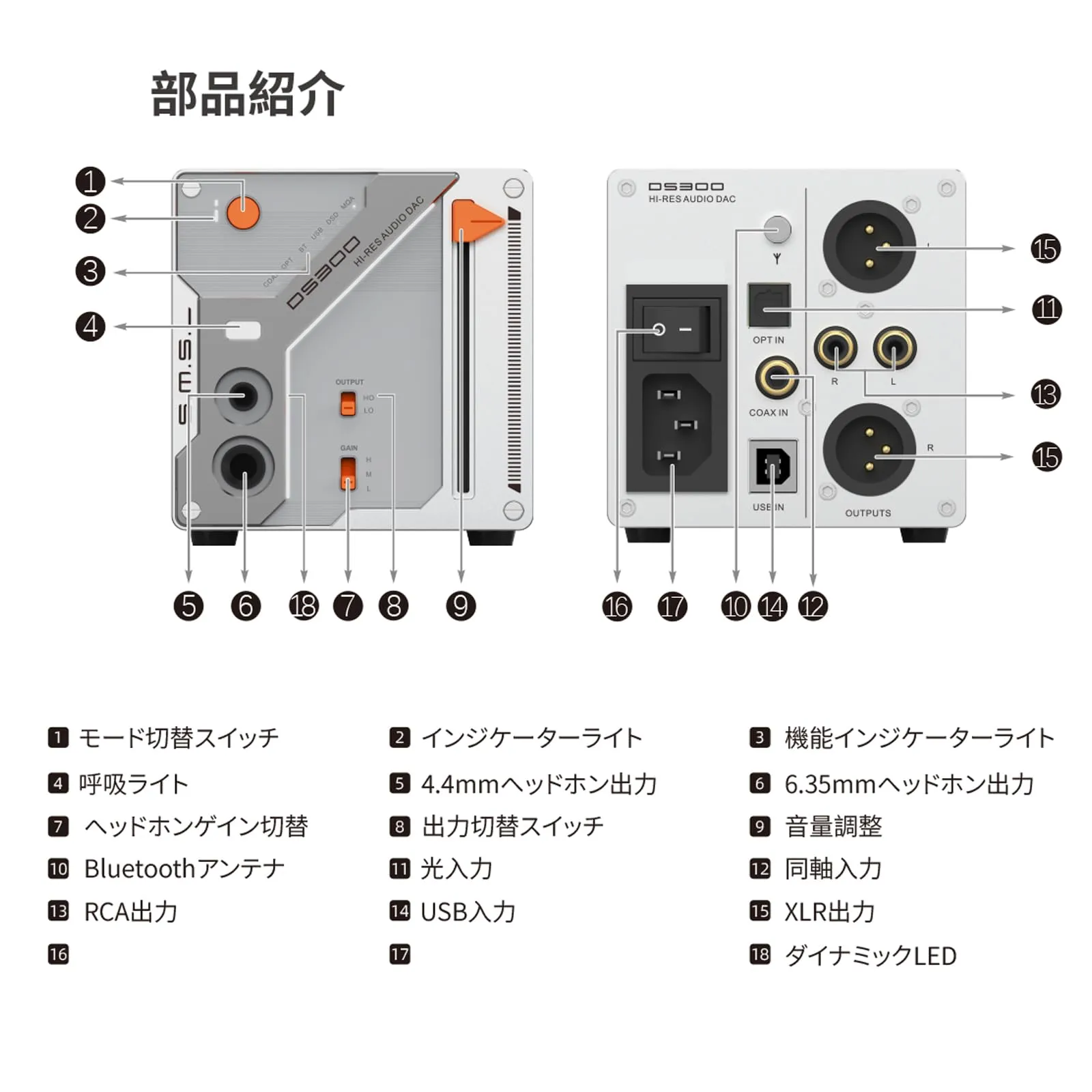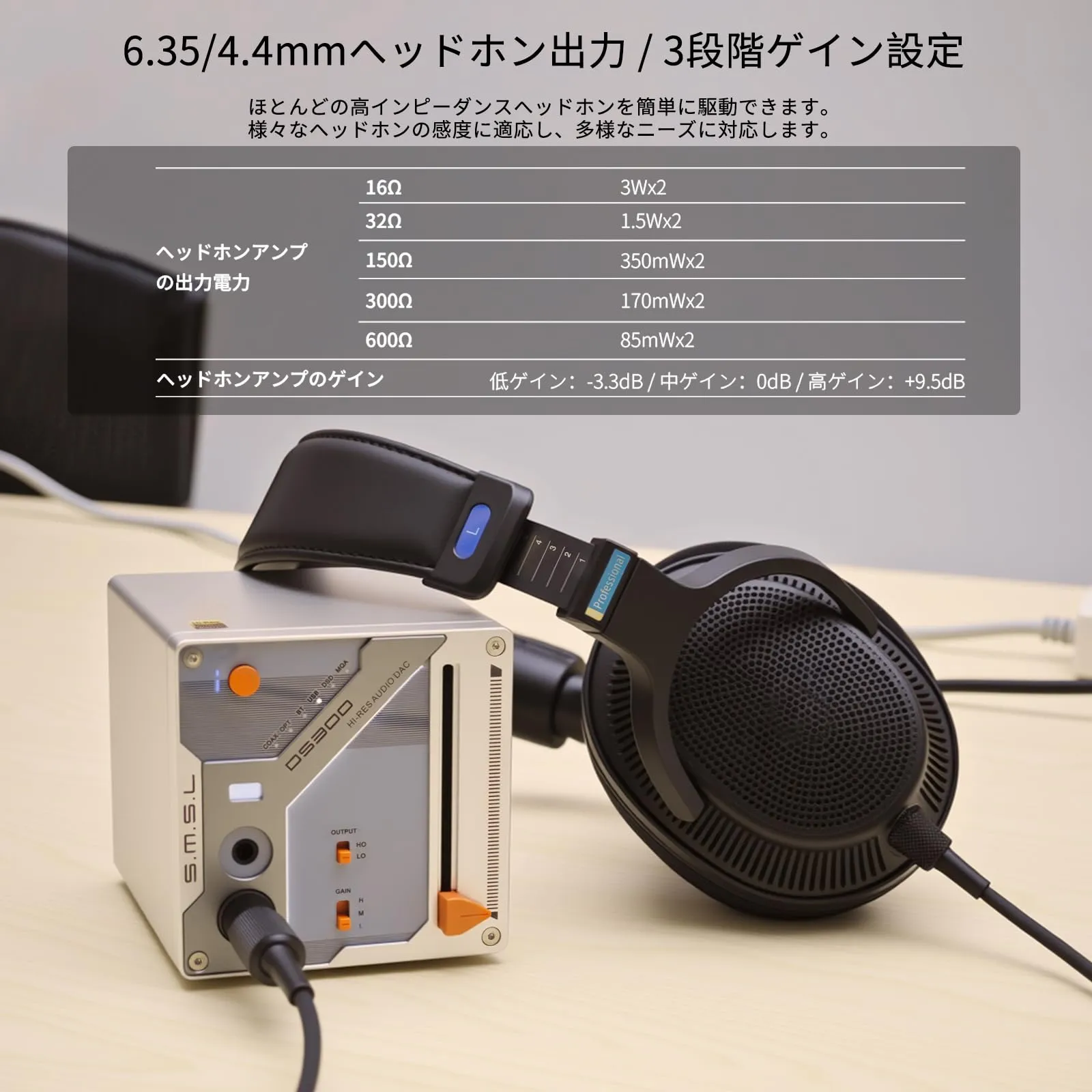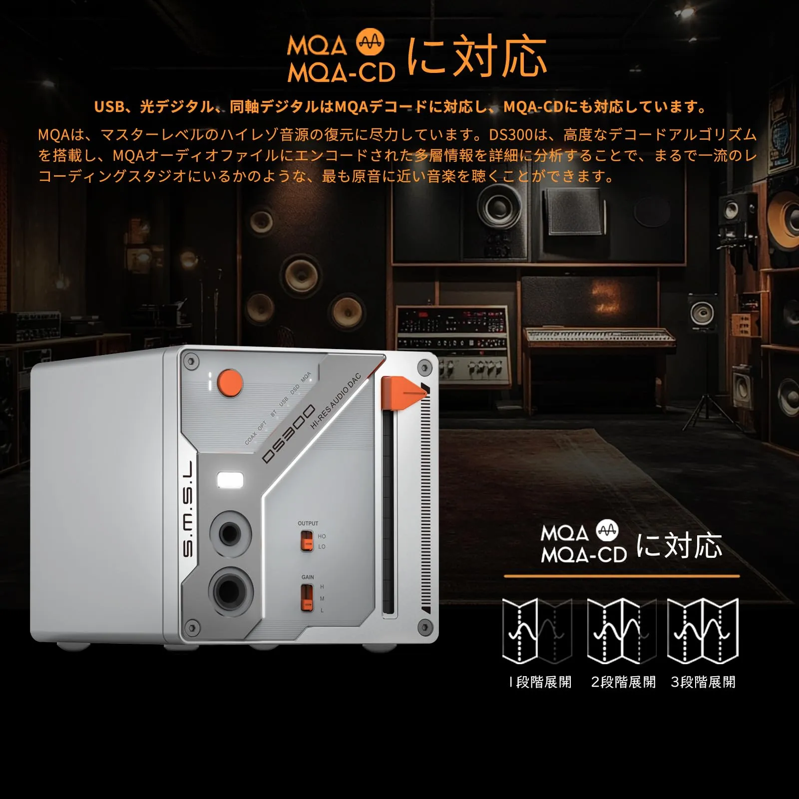 新品 SMSL DS300 ES9039Q2M バランス DAC ヘッドホンアンプ Bluetooth 5.1 オーディオ デコード 4基 デュアルオペアンプ OPA1612A MQA USB DAC 6.35mm/4.4mm ヘッドフォンアンプ PCM 32
