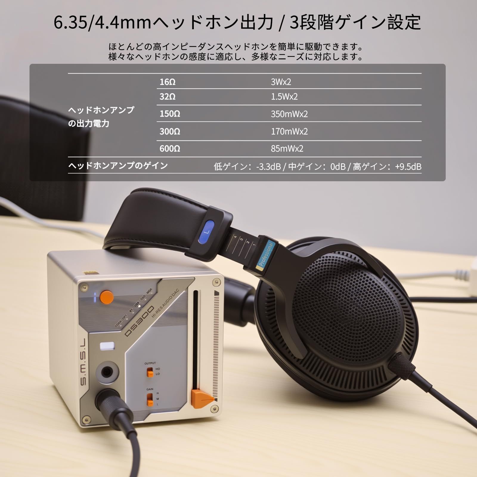 【高性能ヘッドホンアンプと3段階ゲイン切替】6.35mmヘッドホン出力、4.4mmバランスヘッドホン出力、平衡/不平衡ラインレベル出力を装備。ヘッドホン出力は最大3000mWの高出力を誇り、高インピーダンスから低インピーダンスまで、あらゆるヘッドホンを軽快に駆動します。高/中/低の3段階ゲイン調整により、あらゆるヘッドホンにおいて真にロスレスな音質を実現します。