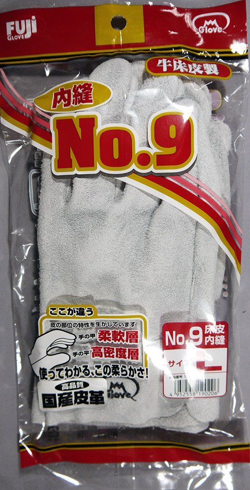 新品 富士グローブ No.9 床皮内縫 皮手袋 Mサイズ 10双組