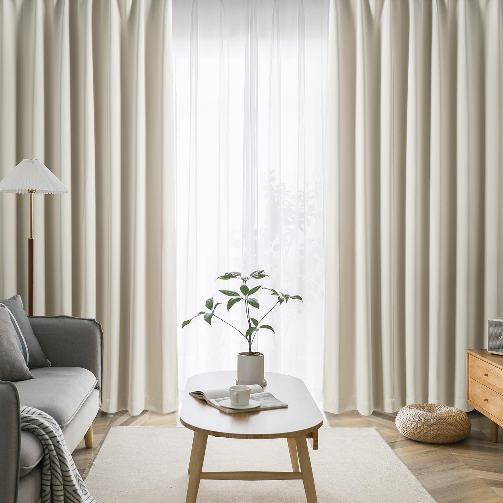 【99.9%以上遮光】迷ったらこれ!シンプル&機能性重視の方におすすめです。この4枚セット(99.9%以上遮光ドレープカーテン2枚レースカーテン2枚)を選択する理由:①光沢を抑えたマットな質感が美しい。②黒ずみの少ないなめらかな生地。③快適に過ごせる優れた性能。遮光率99.9%以上、日差しの強い窓でもしっかりと遮光できるので、光をできる限りシャットアウトしたい方におすすめです。