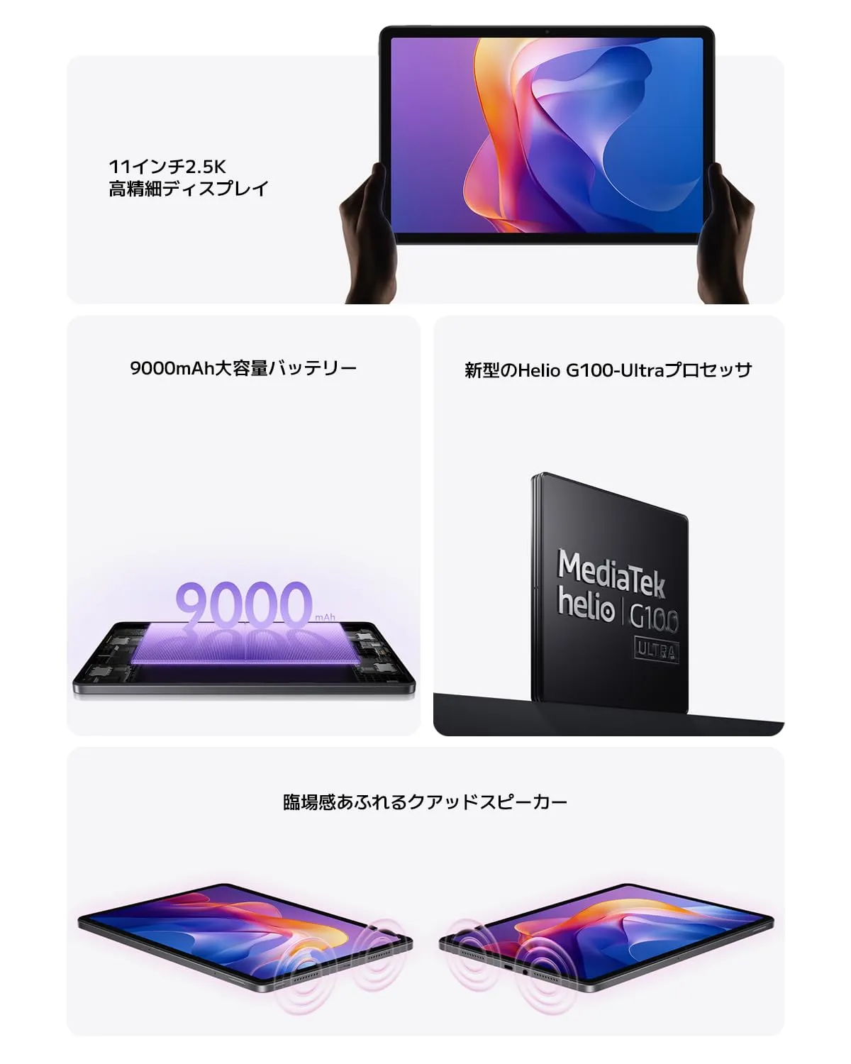 【新型のHelio G100-Ultraプロセッサ】最大2TBまでのストレージ拡張に対応しており、約100本近くの高画質な映画も余裕で保存可能。お気に入りのエンターテインメントを思う存分楽しめます。
