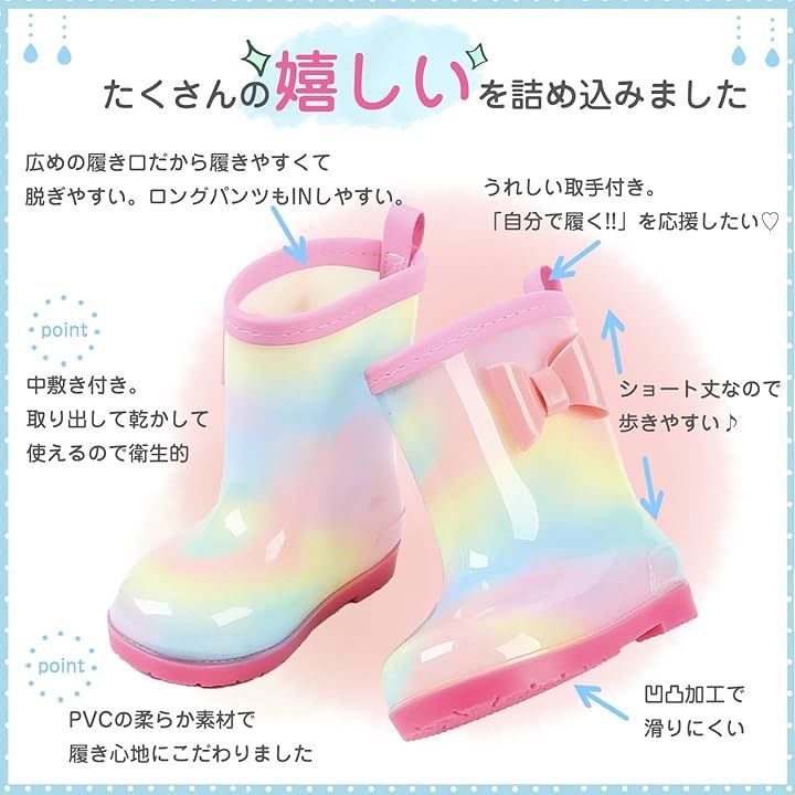 Coco&Mary(ココマリ) キッズ 長靴 女の子 レインブーツ 子供 長ぐつ ジュニア 雨靴 かわいい おしゃれ 女子 ショート (スカイブルー, 14.0~15.0 cm)