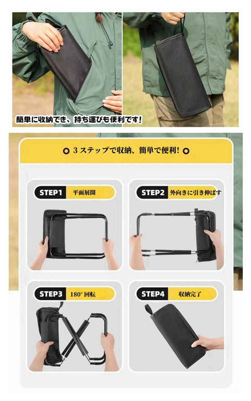折りたたみ椅子 アウトドアチェア コンパクト 持ち運び便利 キャンプ 軽量 耐荷重120kg 釣り BBQ 登山 運動会 野外 折りたたみ キャンプ 収納簡単 屋外用 室内 簡易椅子 ブラック tanyun01