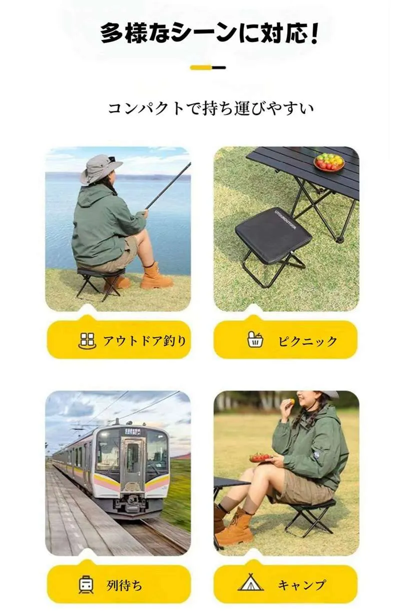 ■ 驚きのコンパクトさと軽量設計!折り畳めばスリムで持ち運びがとても楽。アウトドアはもちろん、室内の急な来客時もサッと取り出せて便利です。