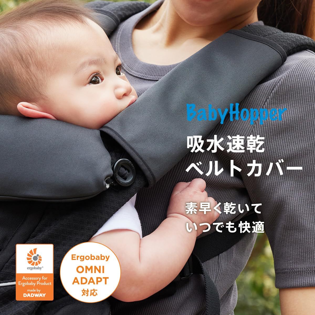 抱っこひもをキレイに保つ必需品。 赤ちゃんは肩ひもをなめたり噛んだりするので、ベルトカバーでよだれをキャッチ。 毎日使う抱っこひもを清潔に保てます。 さらっと乾きやすい吸水速乾生地と、ふんわりパイルのリバーシブル。 内側のポリウレタンラミネートコーティングで、染み込みをしっかり防ぎます。 エルゴベビーの抱っこひものために設計された、エルゴベビー公認アクセサリー。