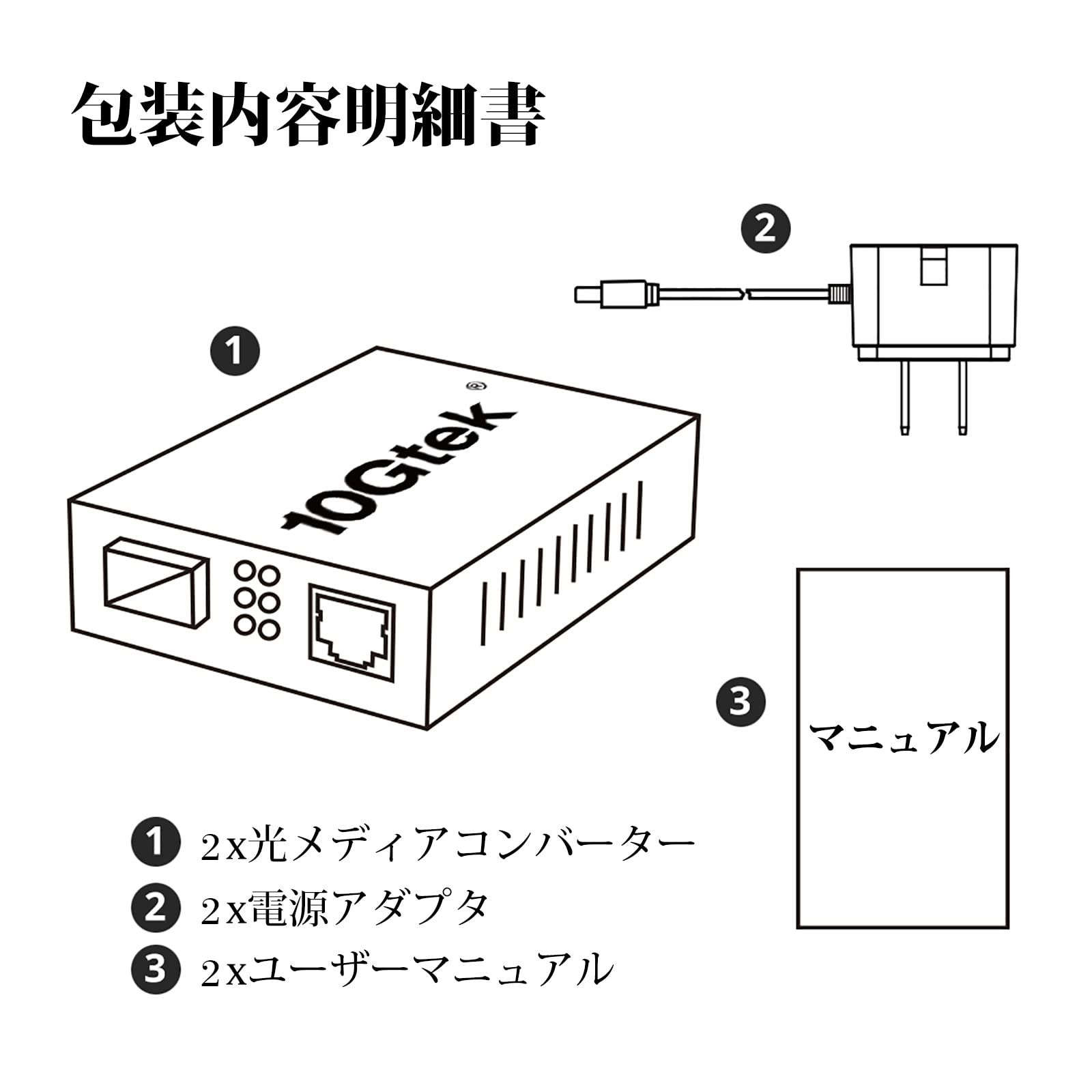 ★梱包内容:2*ギガビットメディアコンバータ、2*DC電源アダプタ(5V-1A、PSE認定)、2*マニュアル。