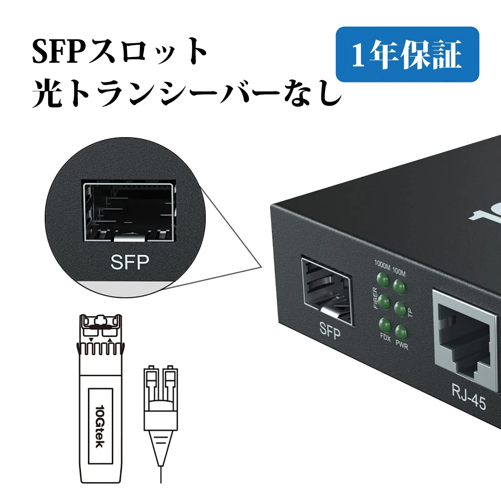 10Gtek 2台入り ギガビット 光メディアコンバーター 1.25Gb/s SFPポートto 10/100/1000Base-Tx