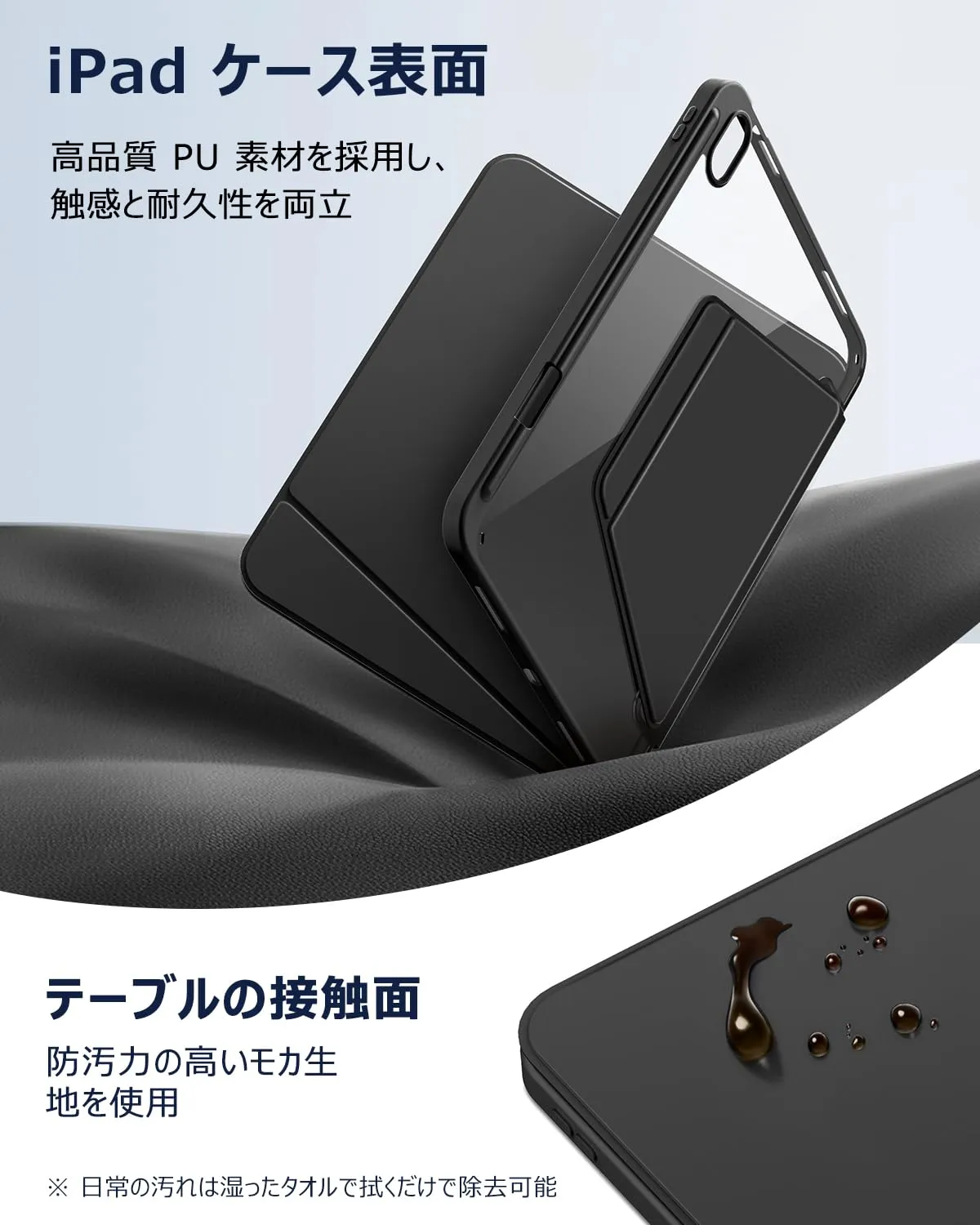 【毎日使うからこそ、汚れに強い素材を】ipad a16ケースの内側には、手触りが柔らかく上品な モカ素材 を採用します。見た目は高級感がありながら、表面は汚れに強く、指紋やホコリが付きにくい仕様です。うっかりペンで線を書いてしまった時でも、柔らかい布や消しゴムで軽くこするだけで簡単にきれいに戻せます。他の安価な製品の繊維素材とは明らかに違うんです。 ブランド CACOE 色 ブラック 対応デバイス iPad(A16)第11/10世代(2025/2022モデル) フォームの形式 ケース シェルタイプ ハイブリッド 配送について、商品のサイズや配送先都道府県によって最適な配送業者を選択しております。 業者・配送方法の指定は承れません。ご了承ください。 万が一の不着、紛失、誤配送の場合など、最後まで責任もって対応致しますのでご安心下さい。 宜しくお願い致します。