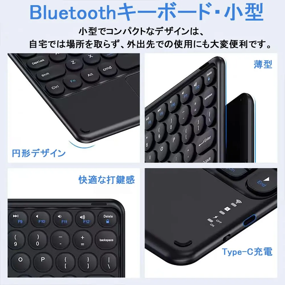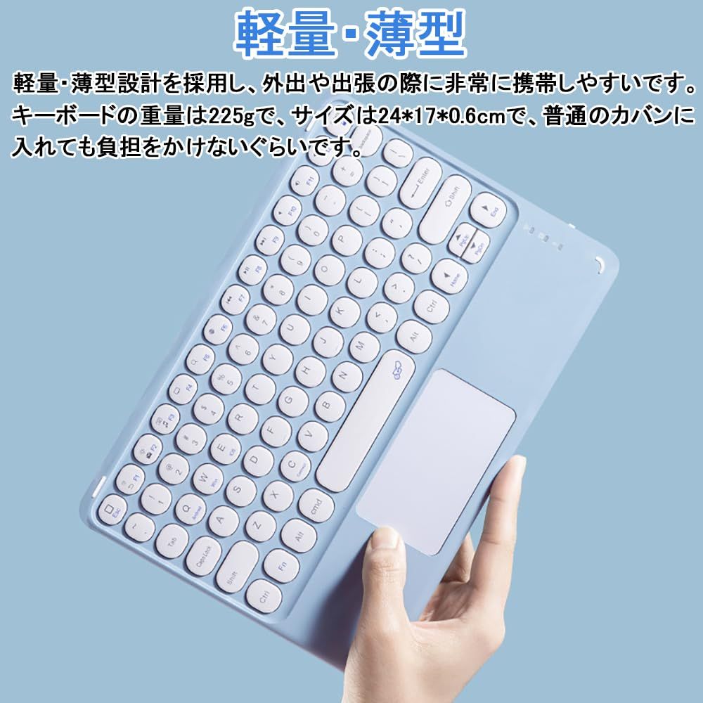 新品 ワイヤレスキーボードBluetooth ipad タブレット用 タッチパッド付き 無線 iPhone、スマホ対応 type-c充電式 英語配列 薄型 軽量 コンパクトアイパッド air pro mini ブルートゥースkeyboard (青)