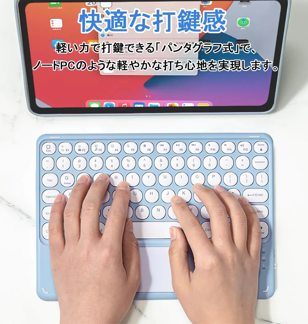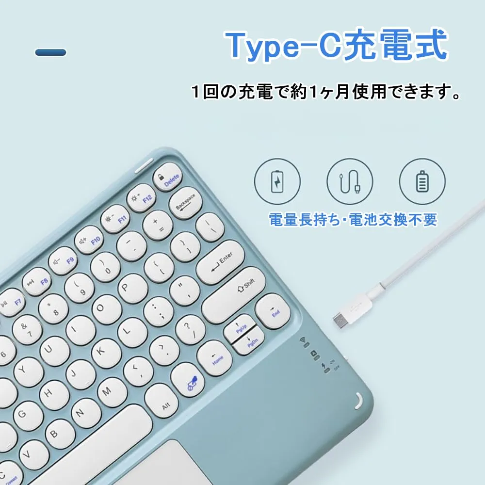 ワイヤレスキーボードBluetooth ipad タブレット用 タッチパッド付き 無線 iPhone、スマホ対応 type-c充電式 英語配列 薄型 軽量 コンパクトアイパッド air pro mini ブルートゥースkeyboard (青)