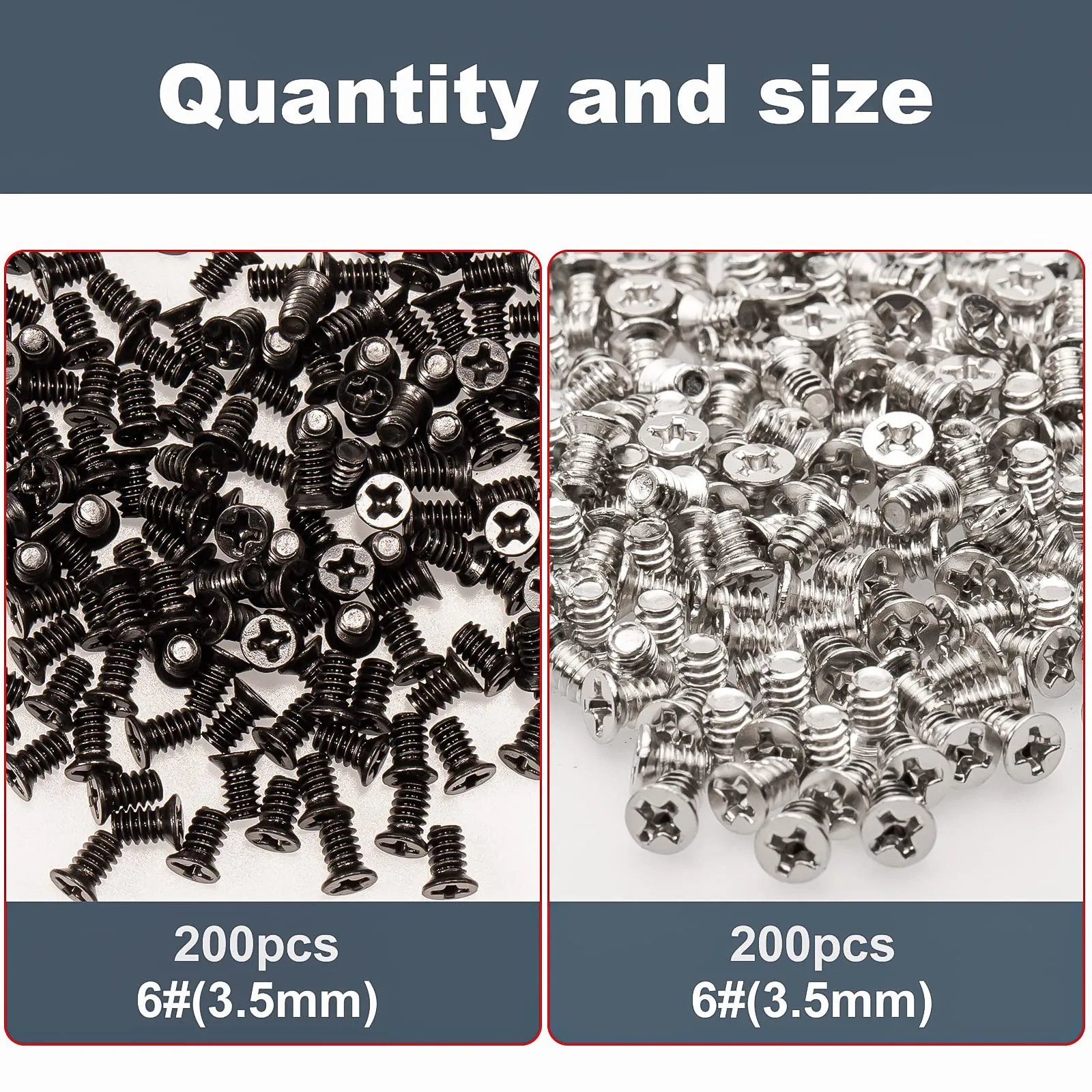 ねじ寸法:6#(3.5 mm)、シルバーコンピュータねじ長さ:5 mm/0.2″、ブラックねじ長さ:6 mm/0.24″
