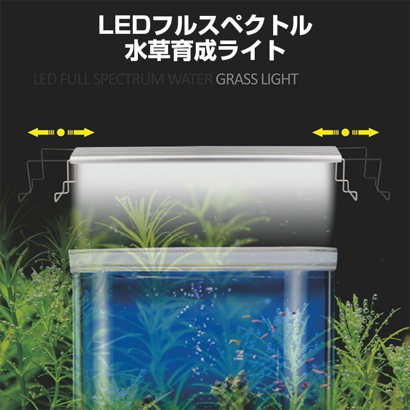 水槽 ライト LED アクアリウムライト 水草育成 調光 30cm ~ 45cm 水槽用 小型 水槽用照明 観賞魚 熱帯魚 金魚 メダカ 高輝度 長寿命 省エネ 明るい 演色性 波長 光合成 レイアウト メンテナンス 作業灯 クリップ コンパクト 白