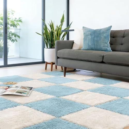 【迅速に発送】ジョイントマット 厚手 もこもこ 絨毯 タイルカーペット 30x30cm 10枚 床暖房対応 滑り止め 防音 保温 床保護 ノンホルムアルデヒド ベージュ ブルー