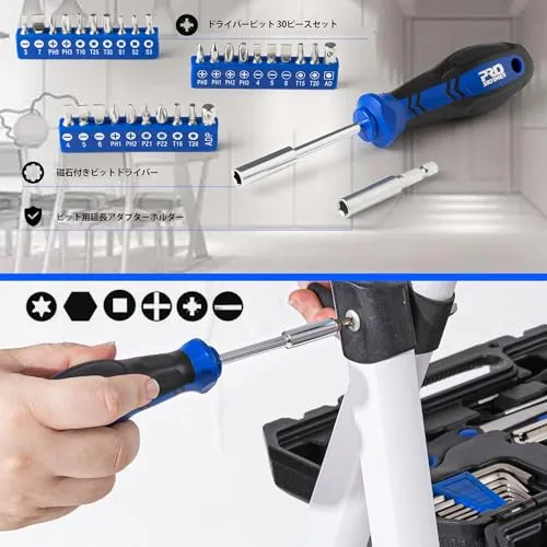 【豊富なバリエーション】クローハンマー、精密ドライバー、コンビネーションプライヤー、調節可能なレンチ、メジャーなど、基本的な工具が1つの箱に入っています。また、デュアルヘッドのミニラチェットドライバー、ソケット、ドライバービットを備えています。