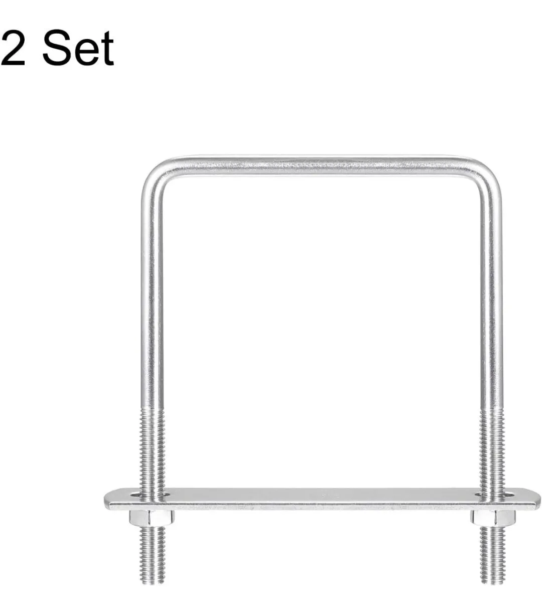 ★uxcell 2セット 角Uボルト M6 内幅7.2cm 長さ10cm コ型ボルト 六角ナット付 ロックプレート付き 304ステンレス 固定ベース 駐車カーポート シルバー
