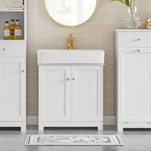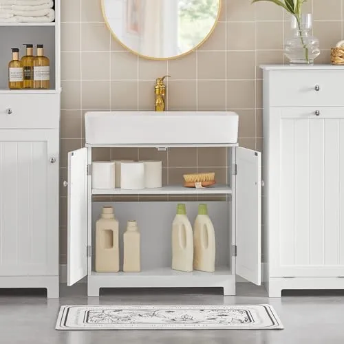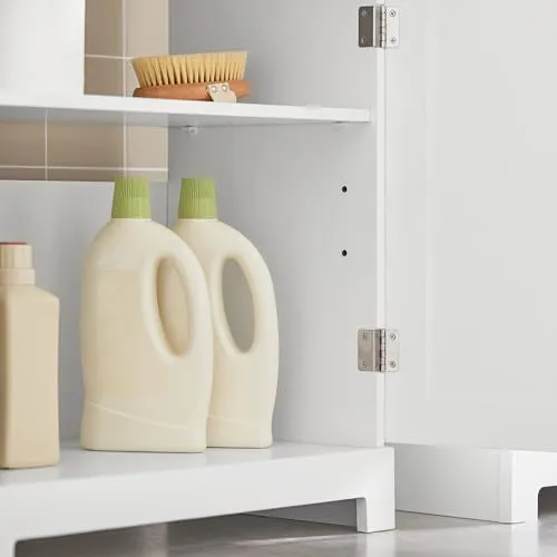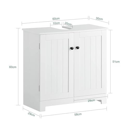 SoBuy 洗面台 洗面化粧台 洗面台下収納 幅60*奥行30*高さ60cm バスルーム下収納 洗面台 収納 キャビネット 洗面所 収納 (BZR18-W/洗面ボールは付属されてない!別途でご購入ください)★m