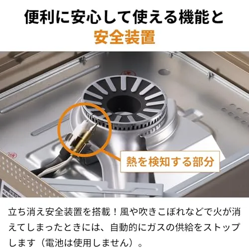 【立ち消え安全装置を搭載】 立ち消え安全装置を搭載しているので調理中吹きこぼれ等で万が一火が消えても自動でガスを遮断するので安心です。