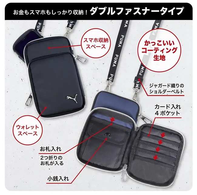【送料無料】PUMA プーマ スマホポーチ 財布 ショルダー紐 男の子 女の子 かっこいい 小銭入れ カード入れ ウォレット スマホ入れ 小学生 中学生 小物入れ 収納
