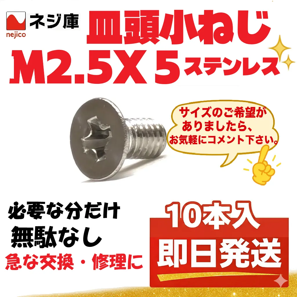【M2.5×5】ステンレス 皿頭 小ねじ (10本) 【即日発送】今ならショップフォローで100円引き♪